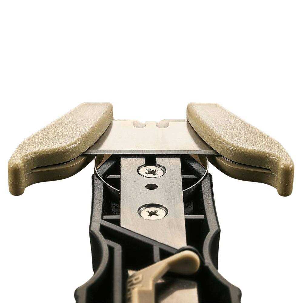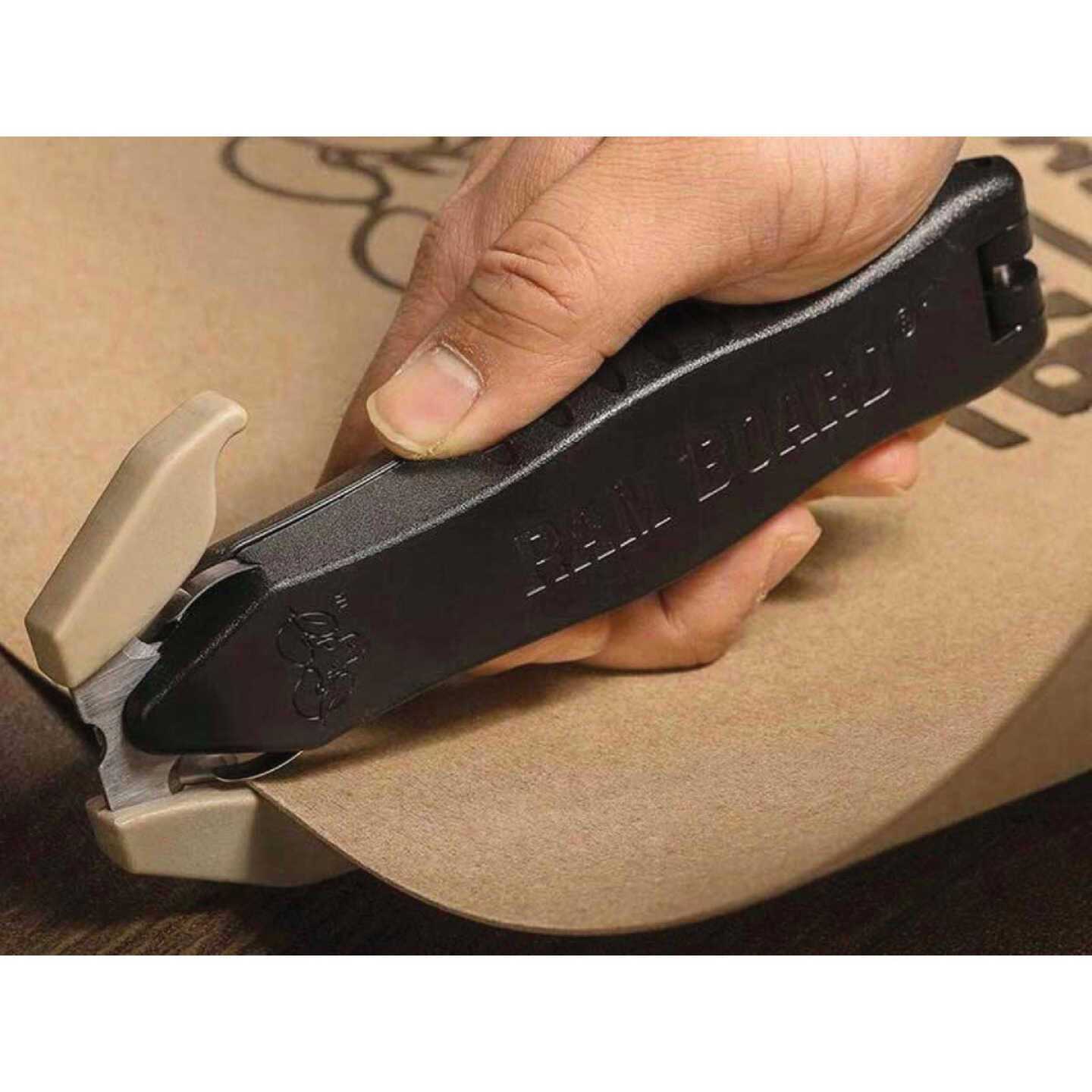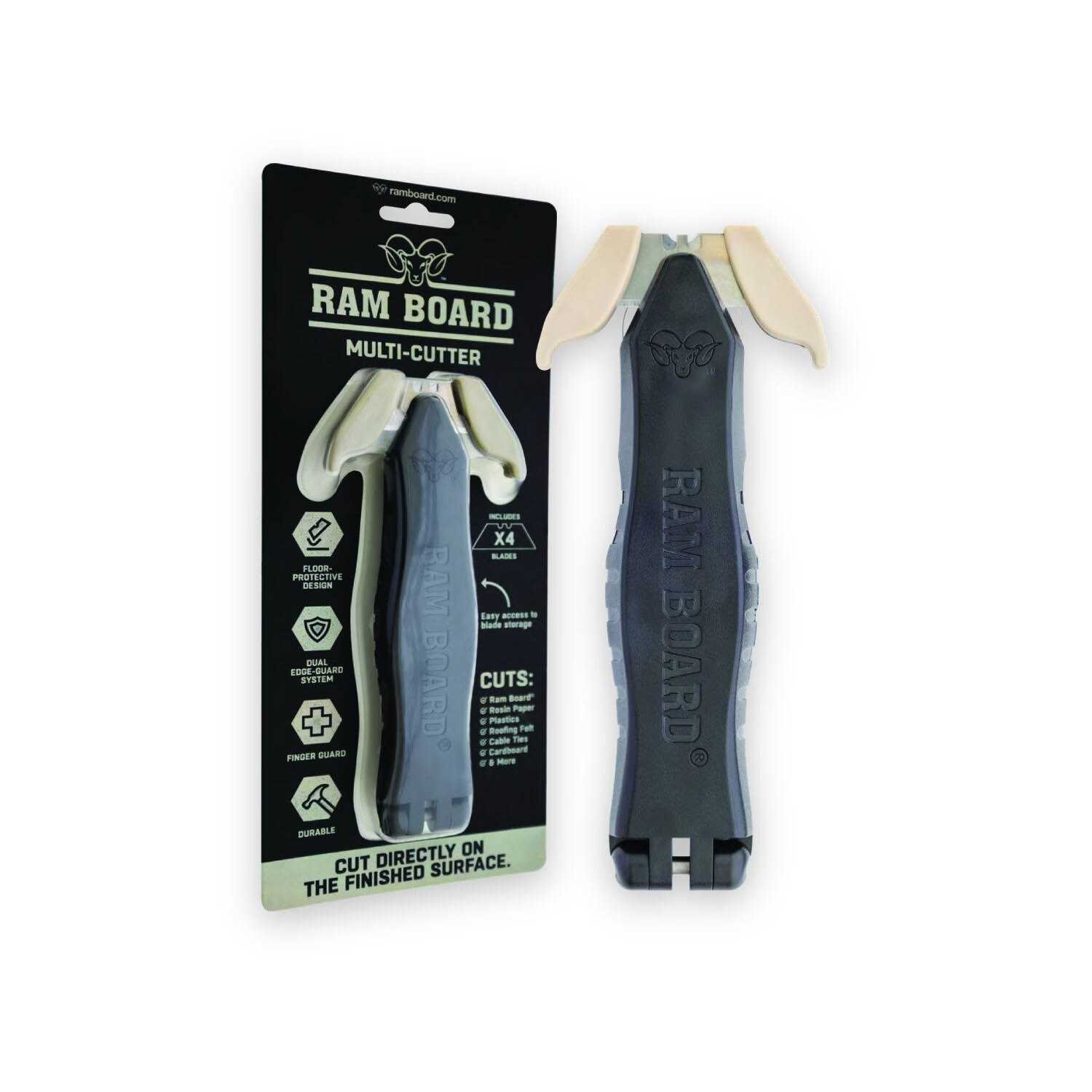 Designed to easily and safely cut Ram Board surface protector.Engineered with an Exclusive Dual Edge Guard System the Ram Board Multi-Cutter protects flooring from damage and scuffs while cutting. Ergonomic, anti-slip grip handle is designed for comfort and safety. Magnetic closure provides easy access to internal storage of replacement blades.