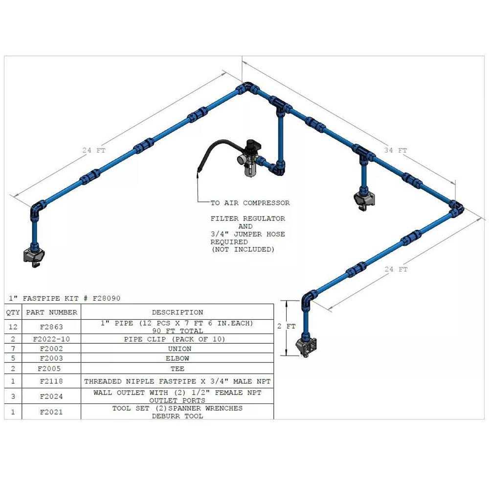 Rapid Air F28090 1 inch Fastpipe 90 ft Compressed Air Piping System Master Kit