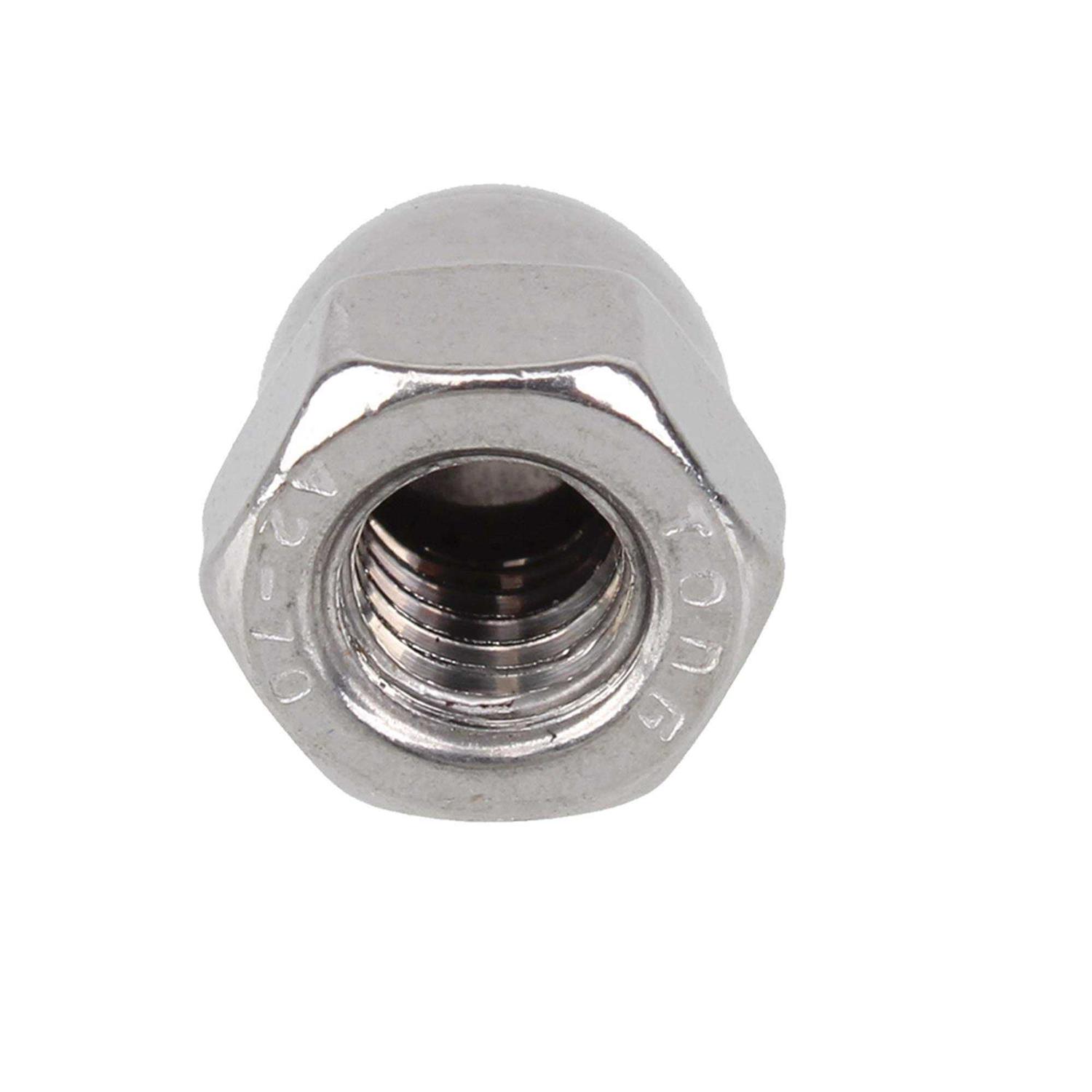 Made of 304 Stainless Steel,offer good quality for long time service. The nut also prevents damage by covering the exposed threads. this acorn cap nut is a hex with an enclosed dome and it is partially internally threaded. Can be used in hobby and furniture projects, fencing, lawn or playground equipment, for a finished a.”