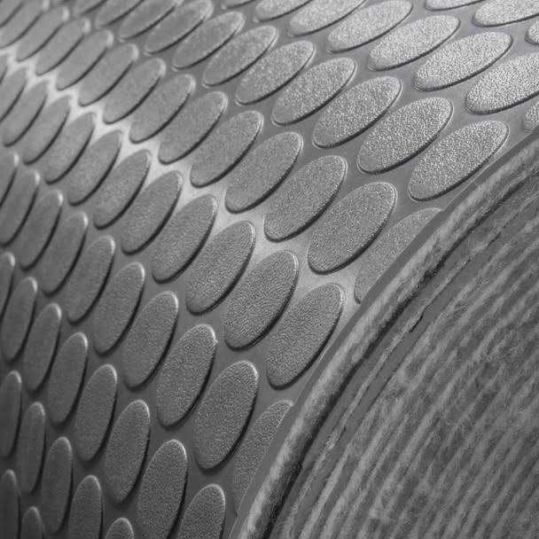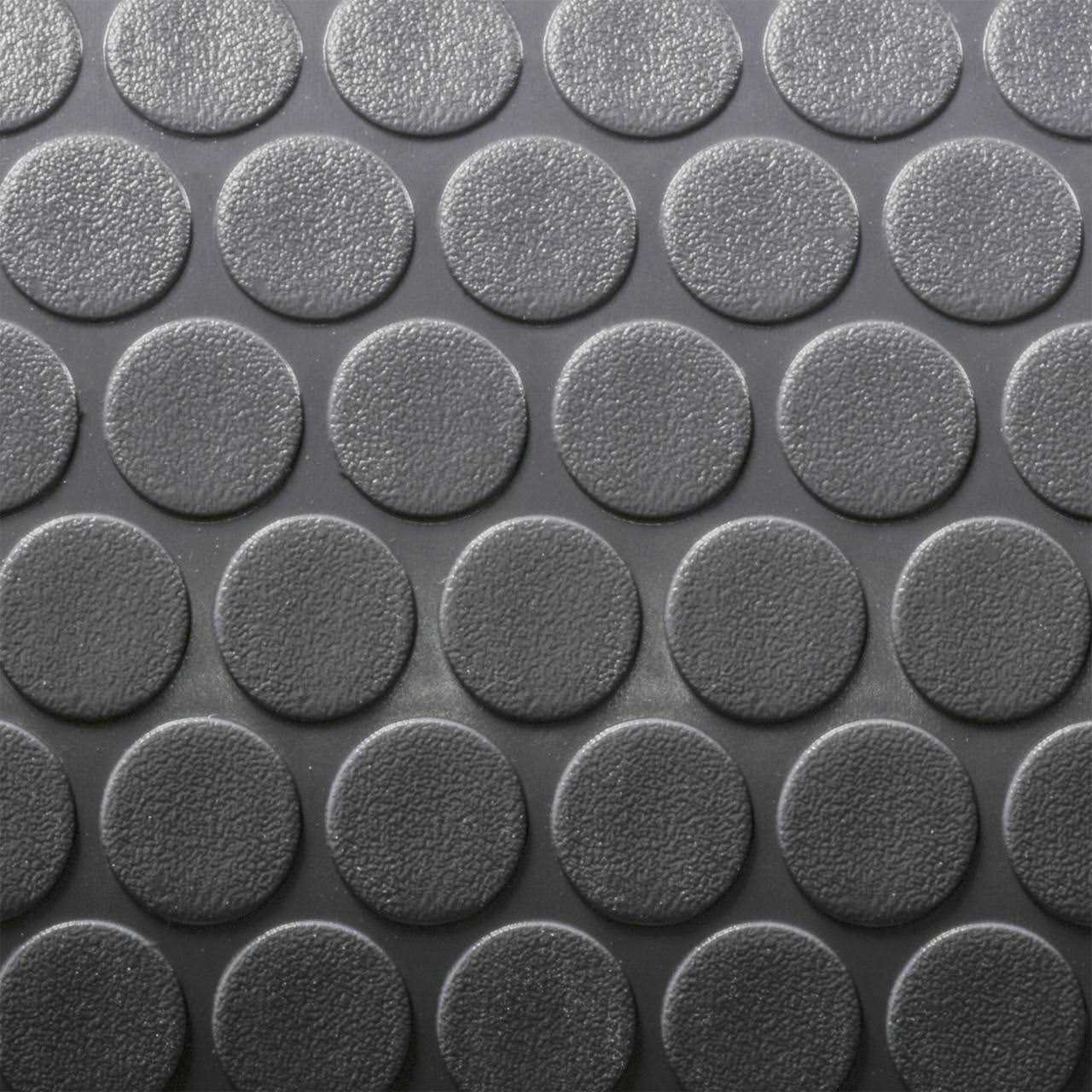 This nickel pattern flooring goes great in RVs, trailers, garages, ramp door applications and even on outdoor steps. The coin pattern makes this flooring non-skid and the material is very easy to clean with using ordinary household cleaning products. This flooring is very versatile and can be used in many different places. This flooring resists cold, heat, sunlight and chemicals much better than Alpha’s Tuff-Ply flooring. The flooring itself will not scratch off, peel or wear and is 100% color through.