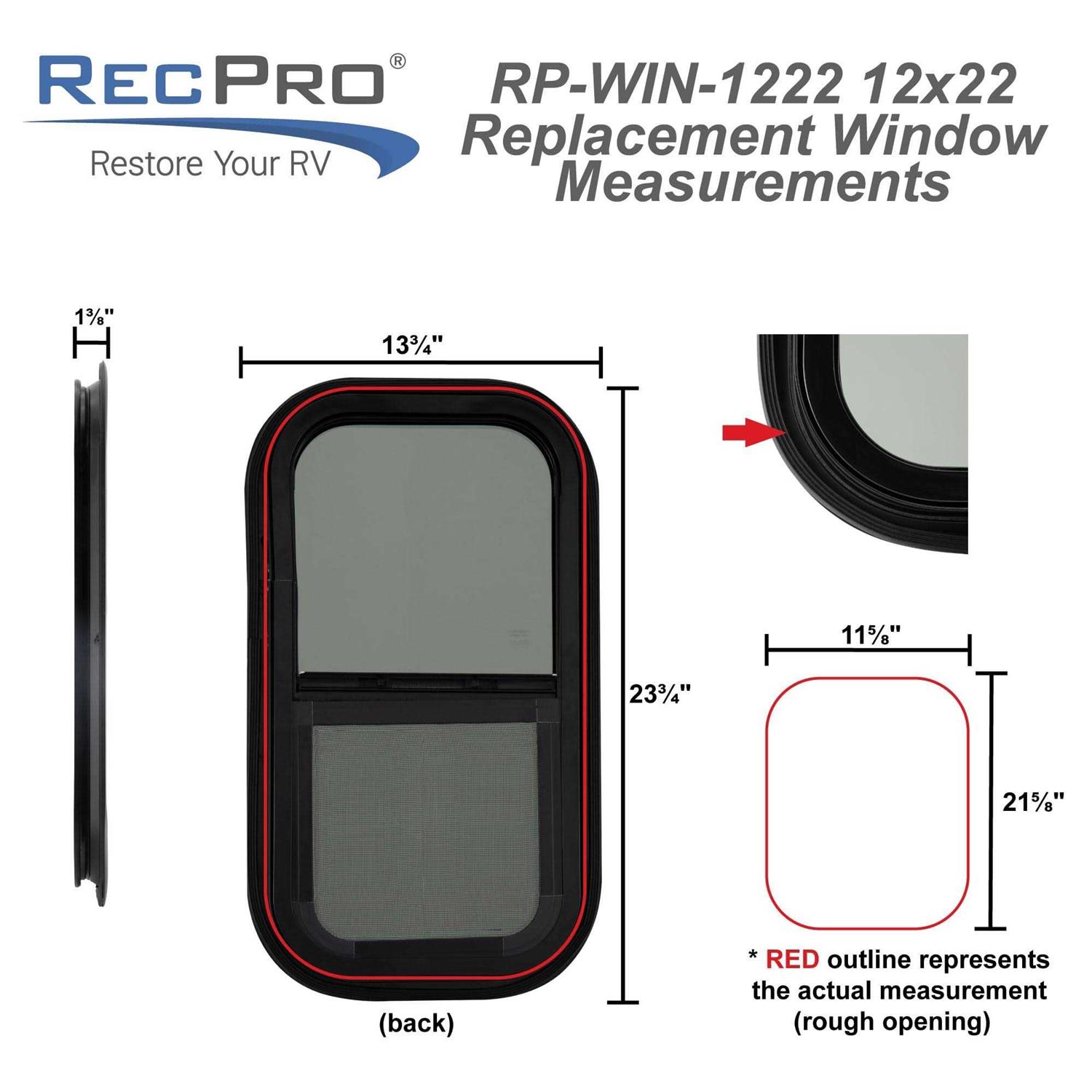 RecPro RV Window | 12″ W x 22″ H | Teardrop Vertical Slide | RV Window Replacement | Optional 1 1/2″ Trim (2 Windows, with Trim Kit) | Made in USA