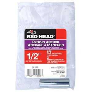 Use the Red Head Zinc-Plated Steel Drop-In Anchor for overhead fastening in solid concrete. The anchor features steel construction and is ideal for use with threaded-rod applications. 4-way slot for dependable anchor expansion. Pre-installed plug is designed to remain in place during installation.