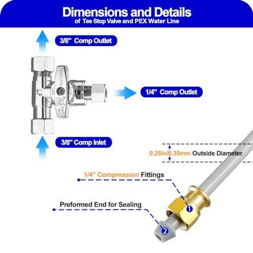 【Potable Drinking Water Use】:Our refrigerator water line is BPA free,made by food grade PEX materials, non-toxic ingredients,odorless and tasteless.Ensure your family enjoy crystal clear ice cubes and pure water. 【Multiple Applications】:The hose is perfect for linking existing 1/4″ outlet angle stop valve or other water supply to Ice maker,Refrigerator,RO(Reverse osmosis) water dispensing system,Ice maker outlet box and Drinking water faucet and more.Also our water line kit is compatible with most brands and models of refrigerator such as Samsung, GE, LG, Whirlpool, Frigidaire, etc 【Moderate Hardness and Durable】:Our 1/4″ OD(Outside Diameter)ice maker tubing is flexible but not soft, running through limited spaces easily.When temperature and pressure of water system changes, the water pipe of this material has a long-lasting and excellent performance.so our hose have a extremely long service life. 【Easy Installation】:The water line had the preformed ends and each end with brass 1/4″ compression fittings,even DIY,your first installation or replacement work can be completed in minutes,and no leakage. 【Includes tee stop valve and instructions】:Our ice maker installation kit includes a 3/8″- 1/4″- 3/8″ tee stop valve, you can add a branch waterways on the existing water supply and freely control on and off. A clear installation instructions help you complete your work easily and quickly INSTALLATION TIPS: 1. Prevent leakage:It is recommended to use a pipe cutter(not include),ensure a clean and flat cut, and insert the tubing into quick connector,push straight as far as posssible 2. Disconnect tubing:Press collet of quick fitting,release tubing and pull out. 3. DO NOT bend the tubing at a 90 degree angle. 4. Avoid long-term use in the sun.