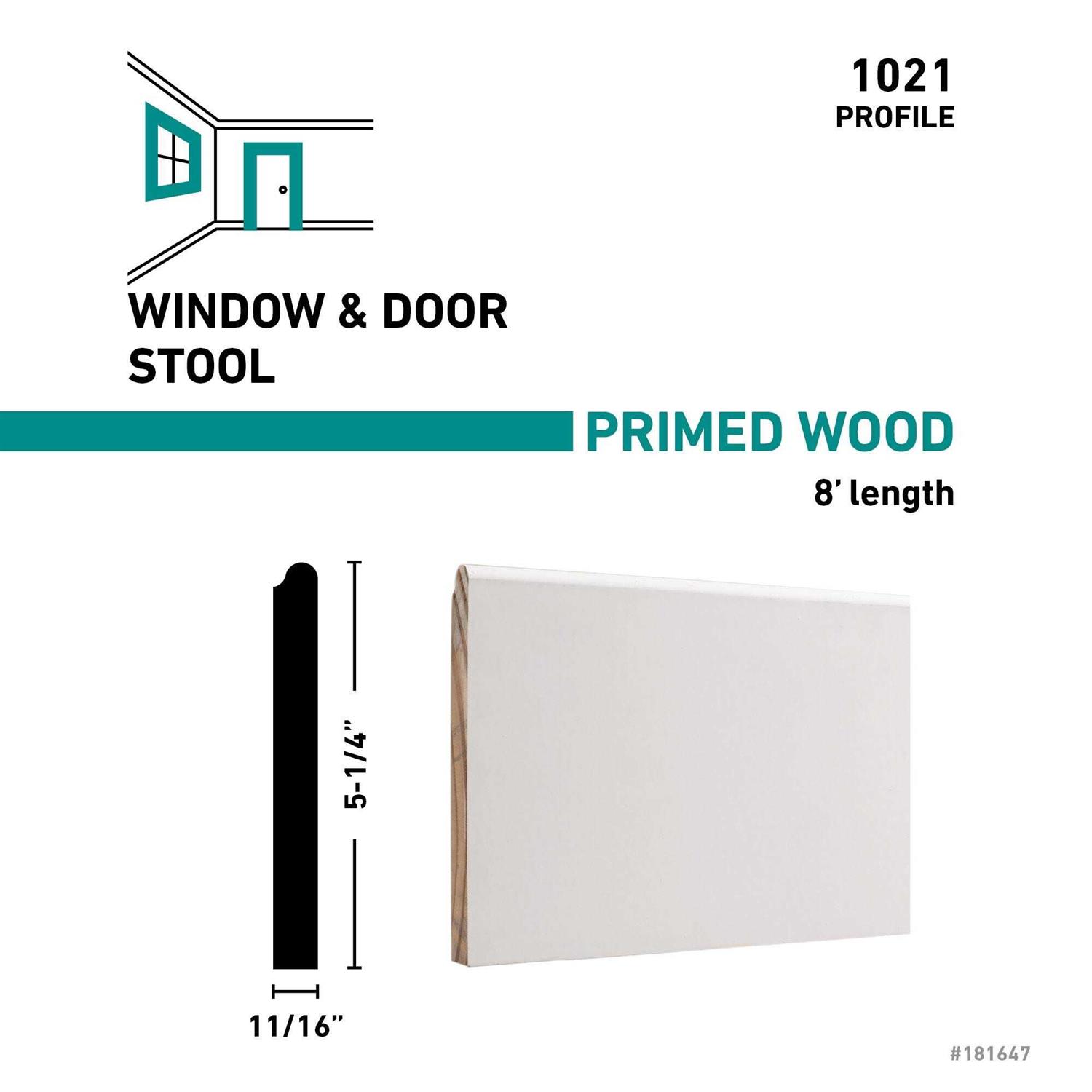 Finger-jointed pine. Primed and ready to paint. Use in window projects that require a flat stool. May be used alone or with other mouldings to create a unique built-up pattern.