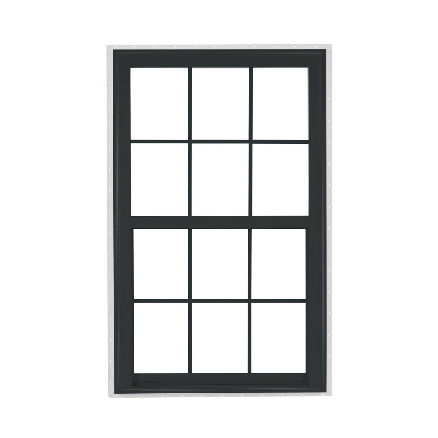 - 150 Series New Construction 35-1/2-in x 59-1/2-in x 3-1/4-in Jamb Black Vinyl Low-e Single Hung Window with Grids Half Screen Included.