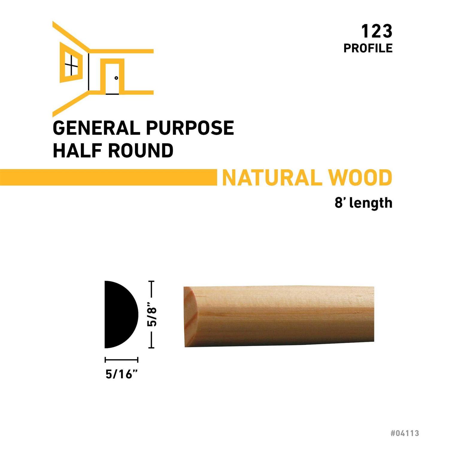 ReliaBilt 5/16-in x 5/8-in x 8-ft Unfinished Pine Half Round Moulding in Brown | 123 8PINE