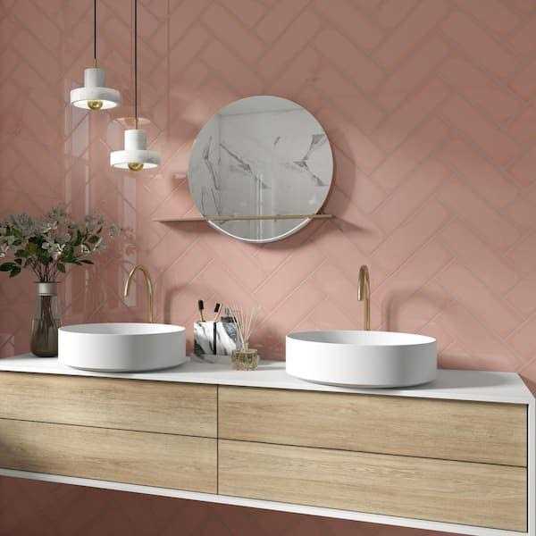 Ivy Hill Tile Remington Pink 3.93 in. x 11.81 in. Polished Porcelain Wall Tile (13.55 Sq. ft./Case)