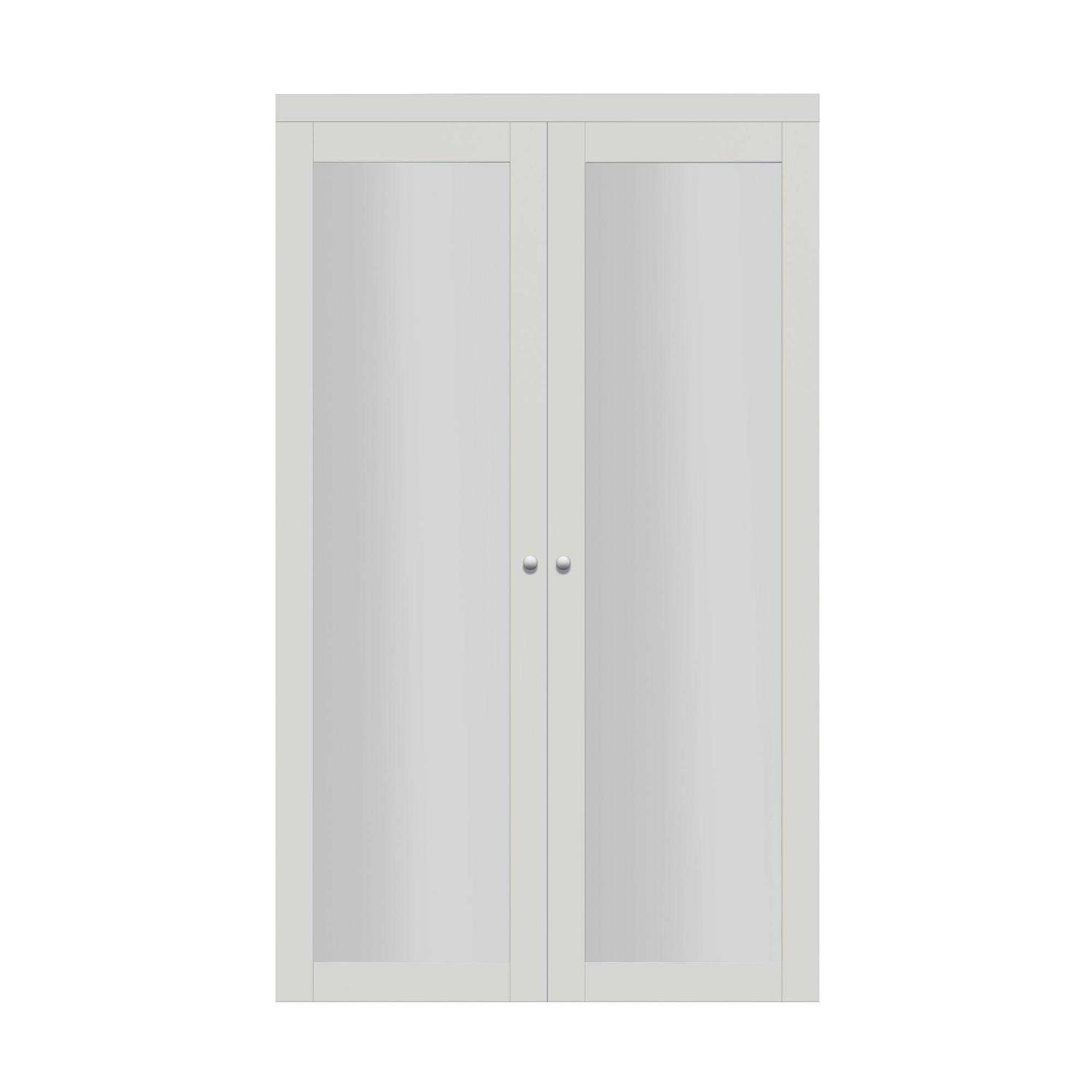 This European-inspired and Italian-designed, 1-lite pivot closet door with frosted glass insert highlights stylish heritage and elegance. The full-length glass insert adds a feeling of openness and light to your room, while concealing storage and preserving privacy. The hinge free design of this modern closet door allows for more versatility in adjusting the door for out of square openings. These doors allow full access without taking up the floor space of a traditional swing door. The glass insert is framed in a prefinished, scratch-resistant, smooth Off-White solid engineered wood with matching fascia, saving you time and mess by skipping the painting and clean-up of unfinished doors.