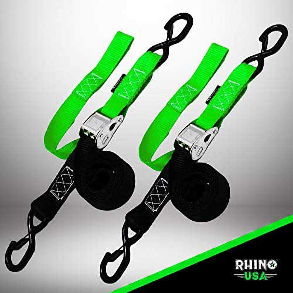 Rhino USA Cambuckle Motorcycle Tie Down Straps (Green 2-Pack)