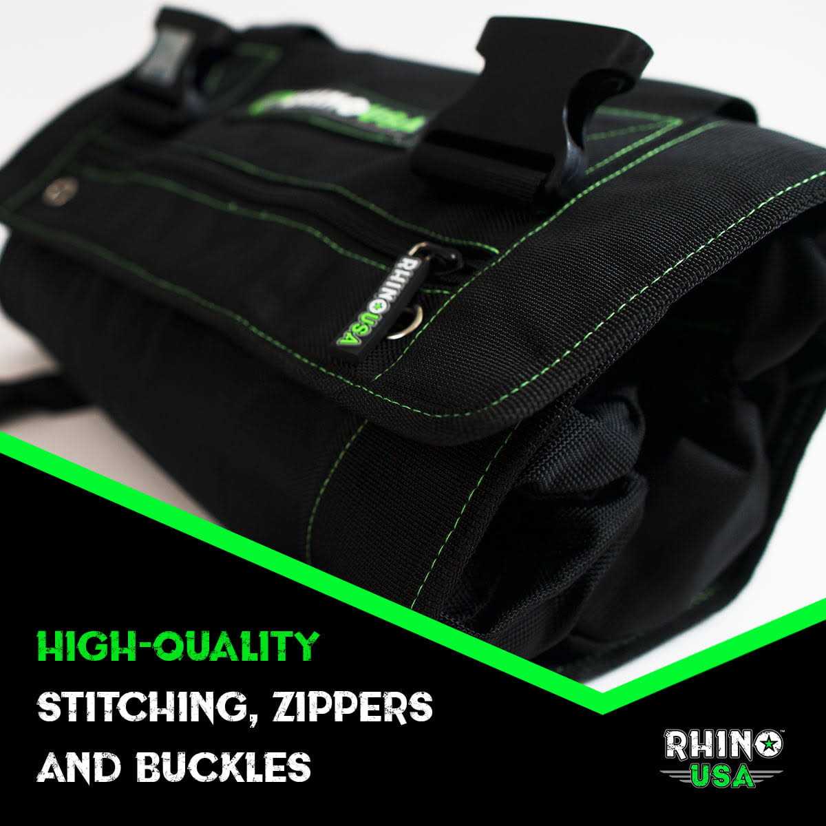 The Rhino USA Ultimate Tool Organizer is the perfect on the go storage bag for all of your tools and equipment. Featuring 5 spacious pouches, you can travel with peace of mind knowing you have all of the equipment to repair any mechanical issues that may present themselves during your next adventure. The heavy duty canvas construction is water resistant, and can hold up to 100 LBS of tools.