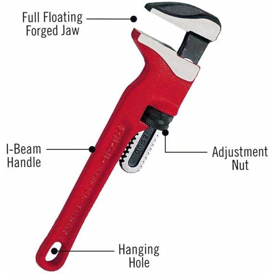 The RIDGID 12-Inch HD Spud Wrench lets you remove or tighten various fasteners. This Ridgid spud wrench’s jaw differs from a pipe wrench in that it has no teeth, which makes it ideal for rectangular or square fasteners, as well as pieces with delicate finishes. It can work on pipes as wide as 2-5/8 inches and as narrow as 3/8 inch for extra versatility. The 12-inch wrench’s long handle provides outstanding leverage for easy turning of tightly stuck fasteners. This wrench’s cast iron construction makes it very durable to handle the most heavy-duty working conditions. It has a hole at the end of the handle so you can store it on pegs or belt hooks.