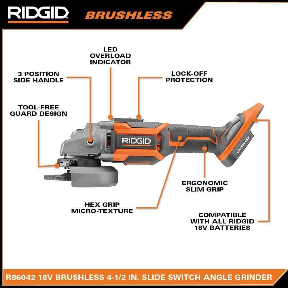 Ridgid 18-Volt Octane Cordless Brushless 4-1/2 in. Angle Grinder (Tool Only)