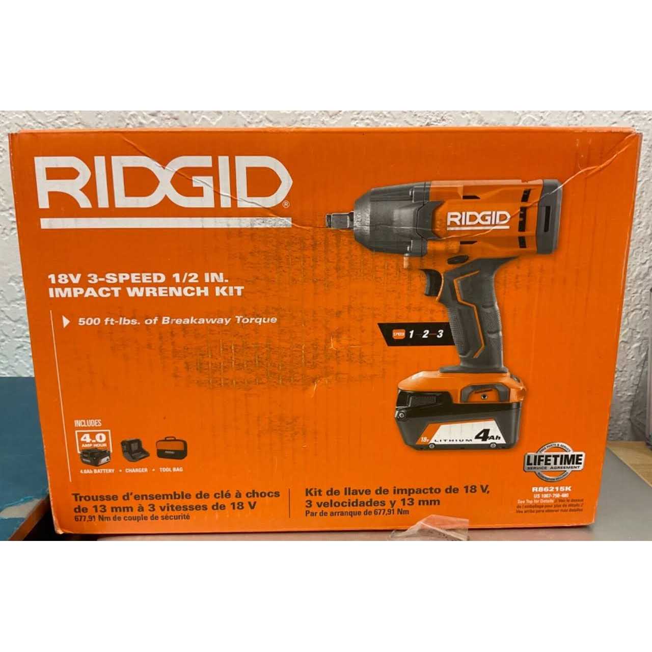 RIDGID introduces the R86215B 18V 3-Speed 1/2 in. This powerful 3-speed impact wrench delivers up to 500 of breakaway torque, 400 of fastening torque, and up to 3,150 impacts per minute allowing it to tackle a variety of heavy duty applications. This tool is built with 3 speed settings for added user control. The 3-Speed 1/2 in. Impact Wrench also features an onboard LED light for improved visibility. Thanks to the ergonomic design, this impact wrench can be used comfortably for extended periods of time. The included battery and charger are compatible with all RIDGID 18V tools. As always, the RIDGID 18V 3-Speed 1/2 in. Impact Wrench is 100% compatible with all RIDGID 18V batteries. Best of all, this kit is backed by the industrys best Lifetime Service Agreement, simply register within 90 days of purchase for FREE Parts, Free Service, For LIFE. The R86215k 3-Speed 1/2 in.