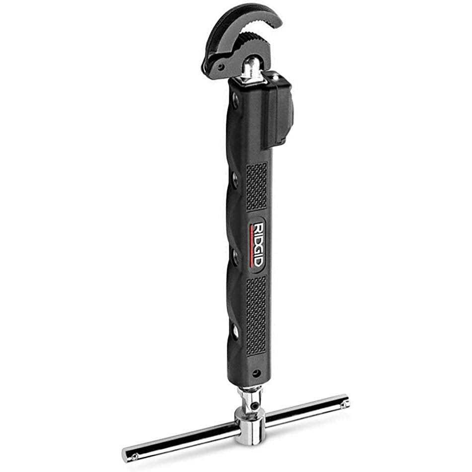 This Ridgid 46753 Telescoping Basin Wrench, an excellent tool designed for faucet fittings, retains nuts well. This has a built-in energy-saving LED light which is water-resistant. The LED light adequately brightens the work area for better job safety. Featuring an auto-shut off timer function for the LED light, battery life will be maximized. Also, batteries are easily replaceable. This Ridgid 46753 has an ergonomic coated handle and a shaped grip over mold for convenient use. It also has a 180-degree revolving removable T-Handle for easy usage in tight spaces. It has a 3/8″ square drive adapter for maximum torque and comfort when using a breaker bar or a ratchet. This Ridgid 46753 Basin Wrench has an enhanced telescoping button design that extends the wrench from 10″ to 17″ and an improved jaw spring design for lengthened life span. Ridgid is one of the leading tool manufacturers in creating durable and high-feature products in the industry. They continue to provide creative products and answers to your needs.