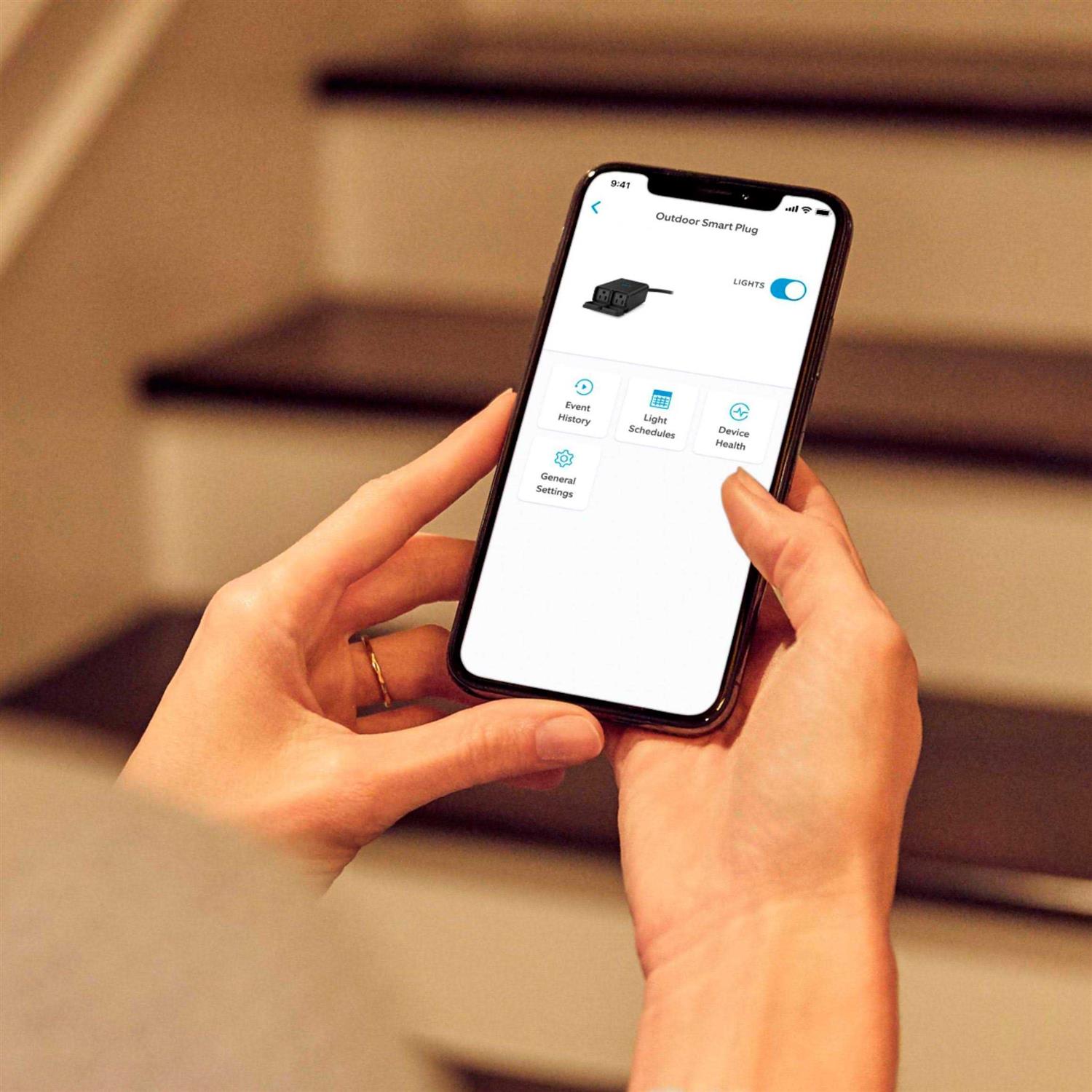 Control your existing outdoor lights or appliances from anywhere with the dual Outdoor Smart Plug. Connect Outdoor Smart Plug to Ring Bridge to enable customizable smart controls in the Ring App and sync with other select Ring Smart Lights, Ring doorbells, cameras, and select Alexa-enabled devices. * *Requires Ring Bridge for smart controls. Sold separately. One Ring Bridge supported per household. See Tech Specs for compatibility requirements and other important information.