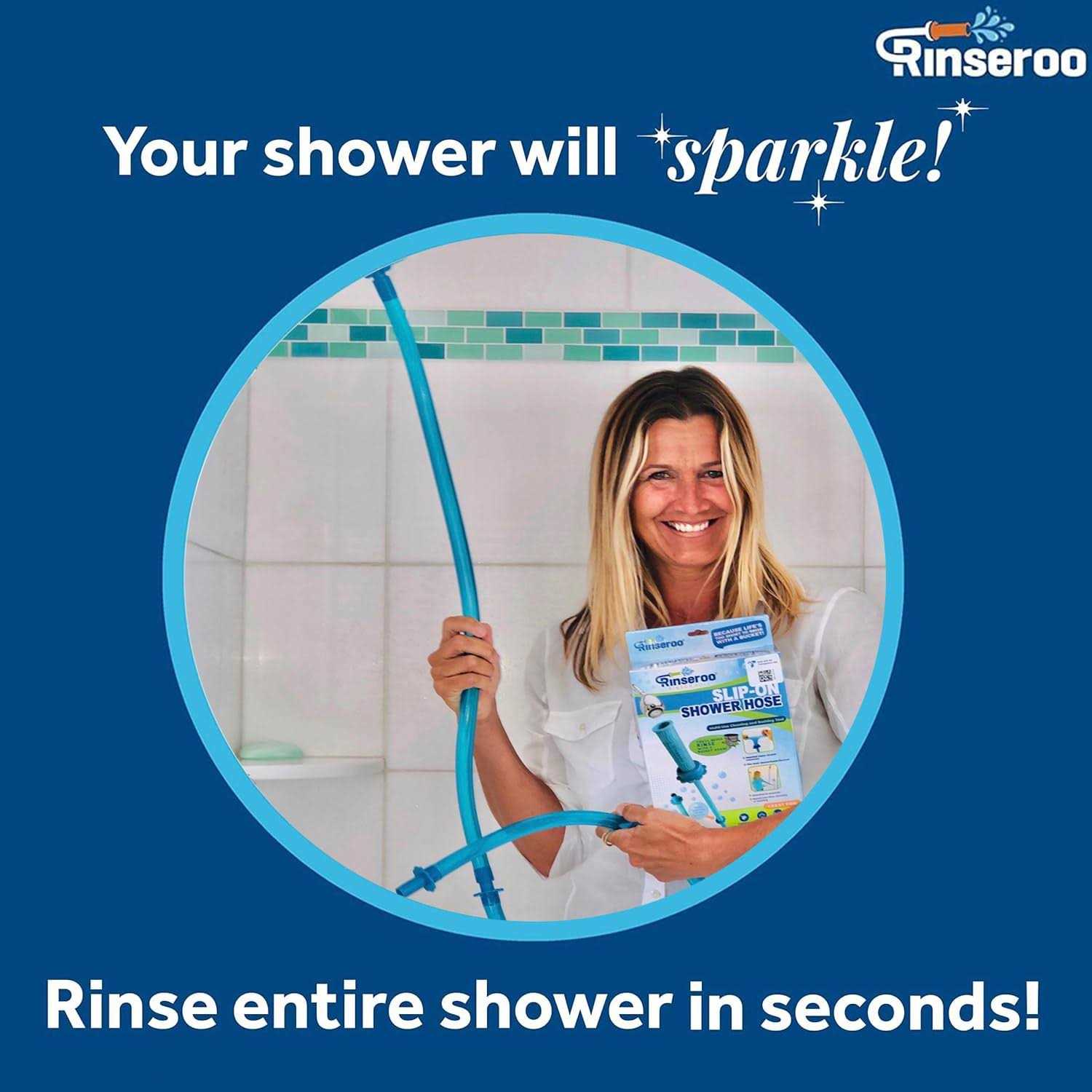 Rinseroo Slip-On, stretch-connect Handheld Showerhead Attachment Hose for Sink and Shower. No Installation, Detachable Shower Head Sprayer for Rinsing