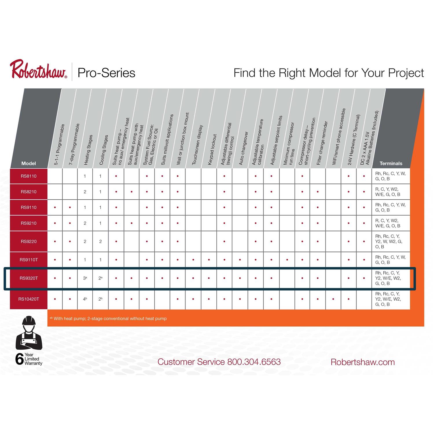 Robertshaw RS9320T Digital Programmable Touchscreen Wall Thermostat