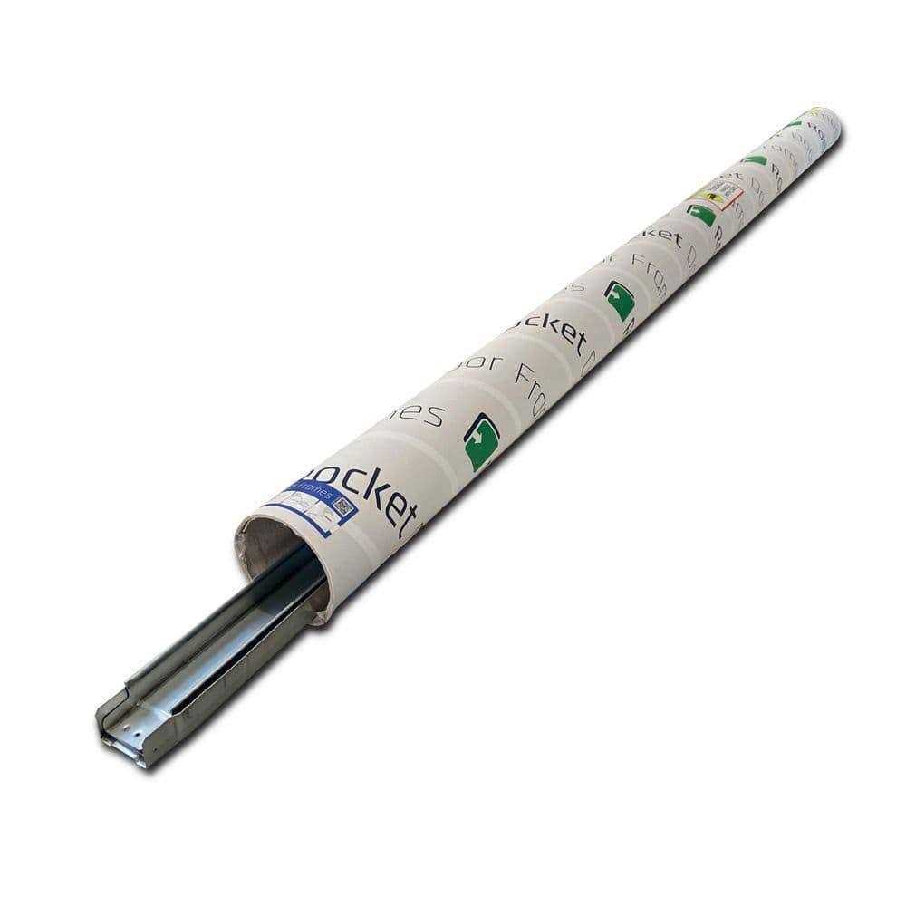 Rocket Pocket Door Frames save time – quick installation-are entirely made from strong galvanized steel, easy to assemble and fit in a 2 in. x 4 in. wall. Pocket doors are an amazing space saving solution for maximizing valuable floor space. By joining two singles you can easily create a double pocket door. The kit is available in 5 specific sizes, each made for a standard 80 in. door size, so you can choose the door you want. The components come pre-cut so there is no cutting. The maximum door weight is 130 lbs. which covers most standard doors. Each frame kit includes a complete galvanized steel pocked and integral running track, both corrosion resistant. A set of runners each having two “sealed for life” chrome steel bearing wheels that are contained within the track and cannot “jump” off the rails. A standard spring steel braking system is included and breaks the door closure under normal usage. Door brackets to attach the door to the runners, adjustable up to 3/10 in. so your door can be at the perfect height. Included are also 1 in. plasterboard screws for attaching your plasterboard to the framework. All you need to supply – plasterboard and your choice of door and door jambs. Full instructions come with the kit, including a QR code to the installation video. Color Silver.