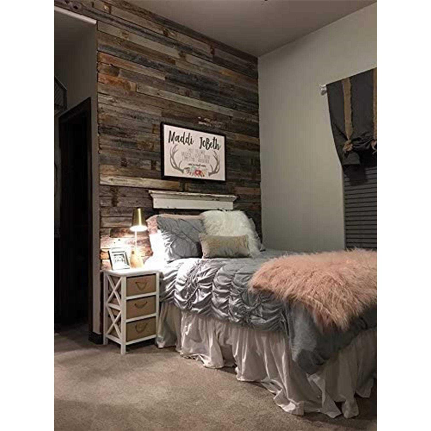 • RECLAIMED WOOD ACCENT: 100-percent reclaimed and recycled, naturally-weathered wood paneling adds a beautiful, rustic accent to your walls