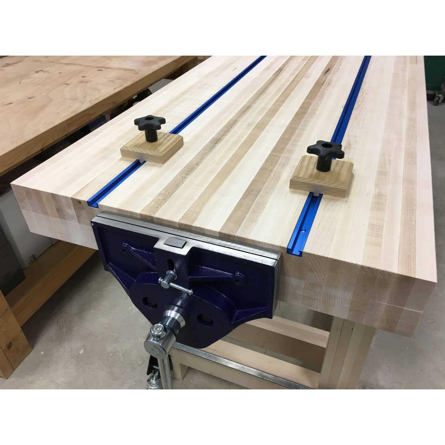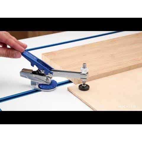 Jig Accessories by ROCKLER. Rockler T track hardware kit has additional lengths of track are sold separately. For added versatility and functionality, combine T-Tracks with 5-1/2″L x 1-1/8″W Hold Down Clamps (#35283), and 3-1/2″L x 3/4″W Hold Down Clamps (#45692). All jig tracks are made of aluminum for strength and durability. Universal T-Track and Miter Track are blue; T-Loc and Dual Track are silver. The Universal T-Track is pre-drilled with holes for #6 flat head screws, centered in the track, and equally spaced on 4” centers along the length of the track. The 2′ Rockler track has six holes; the 3′ track has nine holes, and the 4′ track has twelve holes.