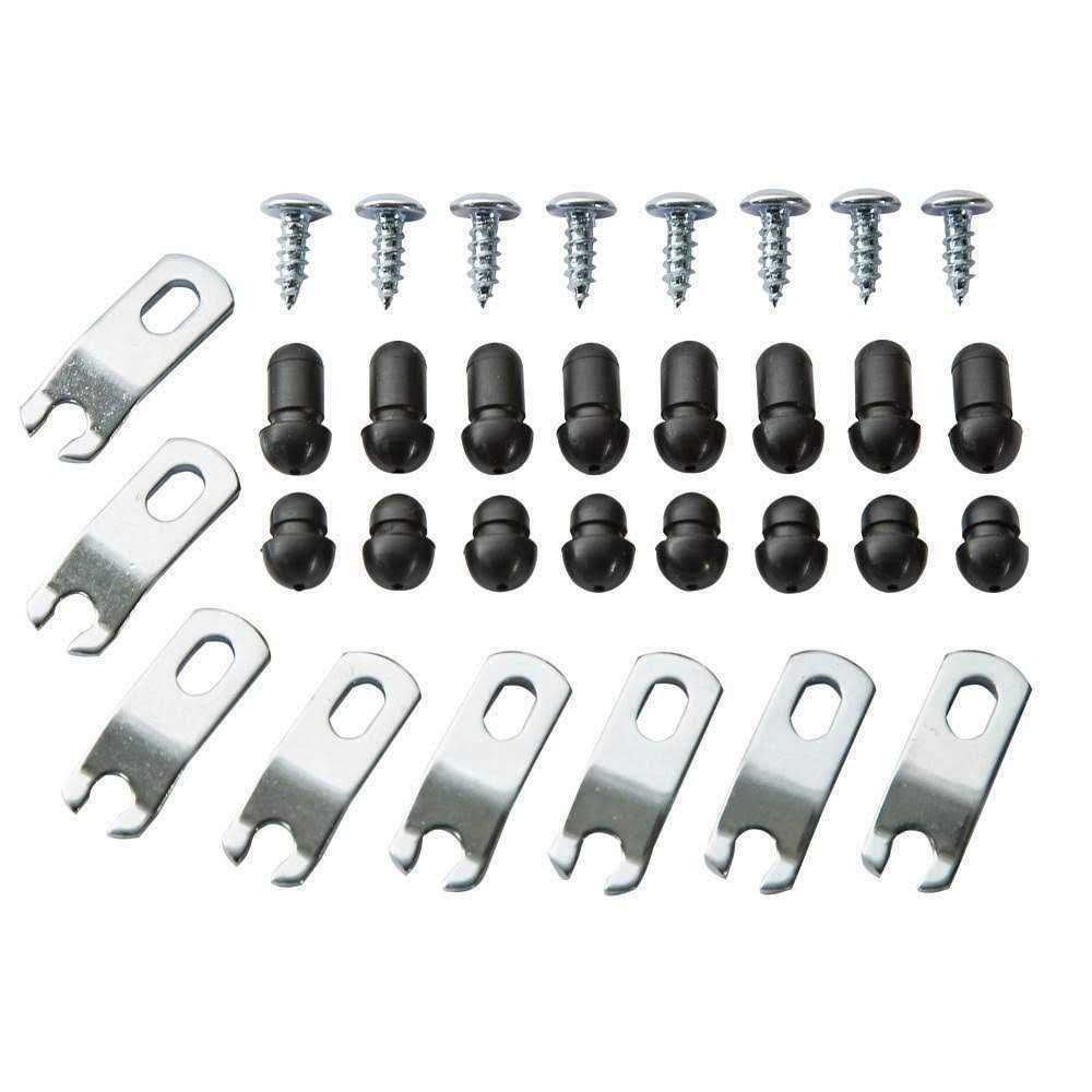 No more rattling glass when you close cabinet doors these retainers feature interchangeable, soft rubber tips that push the glass securely against the frame. Both clip and tips can be flipped over for a variety of different offsets ranging from flush to 1.3cm setback (measuring from back of glass to surface of surrounding frame). Each package includes 8 clips, 8 long rubber tips, 8 short rubber tips, and 8 screws. Antique Brass finish.