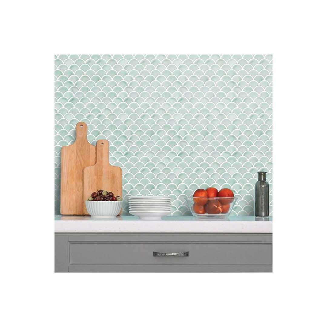 RoomMates Scallop Peel and Stick Backsplash Aqua