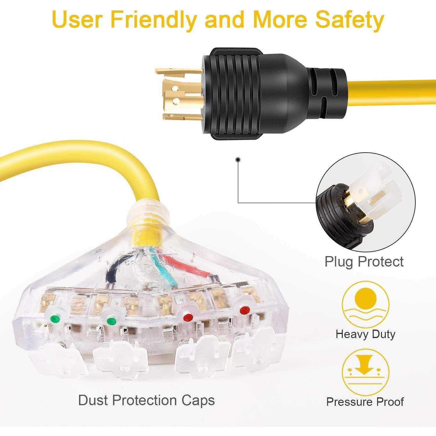 Brand: Rophorcolor: Yellowfeatures: 【rv Generator Adapter Cord】: 15 Amp To 30 Amp Rv Generator Adapter Converts A 30a Locking Receptacle On A Generator To 4x 5-20 Grounded Outlets That Accept Standard 5-15 Or 5-20 Grounded Cords; Power Four Pieces Of Equipment Up To 3750 Watts With This 30 Amp Generator Cord. 【safety Assurance】: 10 Awg 4 Conducor Heavy Duty Cord Made Of Copper With Pvc In Ul 62 Standard For Heat-proof Insulation And Antioxidants, And Plug In Ul 817 Standard Support. The Clear End Receptacles With Dust Protection Caps, Provide Optimum Performance And Added Safety. 【hight Quality Material】: 600volt Thermoplastic Stw Jacket And 10 Awg (american Wire Gauge) X 4c All-copper Wires, Features Excellent Abrasion, Oil And Moisture Resistance And Flexibility. It Should Last For A Long Time Even With Rugged Use. 【produc Specification】: Support Max 30 Amp Overload, 125v, Max Wattage 3750 Watts, 1.5 Feet,stw Power Cord With 125/250v L14-30p Male Plug And 125v 4x 5-15/20r Female Receptacle. 【why Choose Us】: Rophor Specializes In The Production Of Various Adapter Power Cords. 100% Of The Products Have Been Rigorously Tested To Ensure That Each Product Received By Our User Can Work Perfectly. Ean: 0610625549251package Dimensions: 10.9 X 7.0 X 2.0 Inches