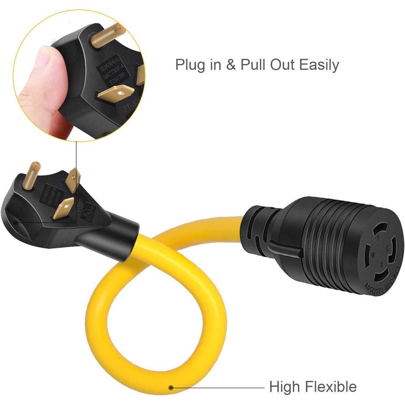 Rophor Generator Transfer Switch Adapter Cord TT-30P male to L14-30R Female, 30 Amp 3 Prong to 4 Prong Generator Plug Adapter, RV Generator Plug to in