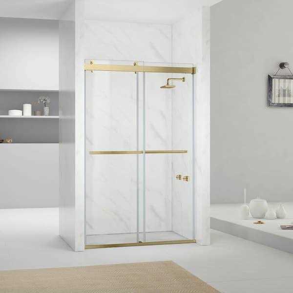 Roswell Spezia 56 in. W x 76 in. H Double Sliding Seimi-Frameless Shower Door in Brushed Gold with Clear Glass