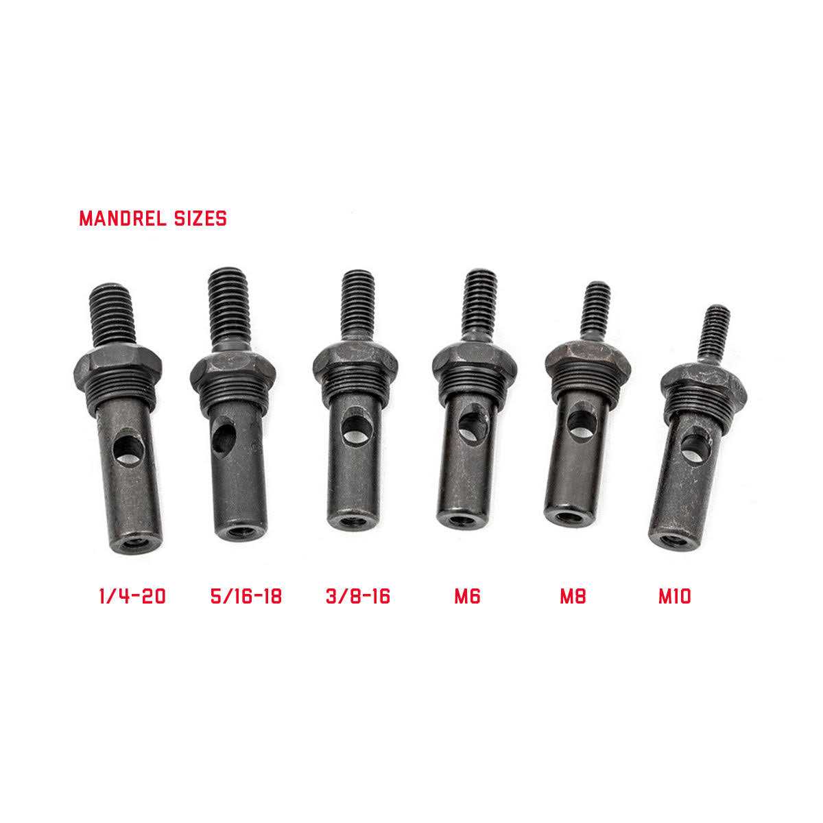 • SAE and Metric Mandrels | 1/4-20 | 5/16-18 | 3/8-16 | M6 | M8 | M10.