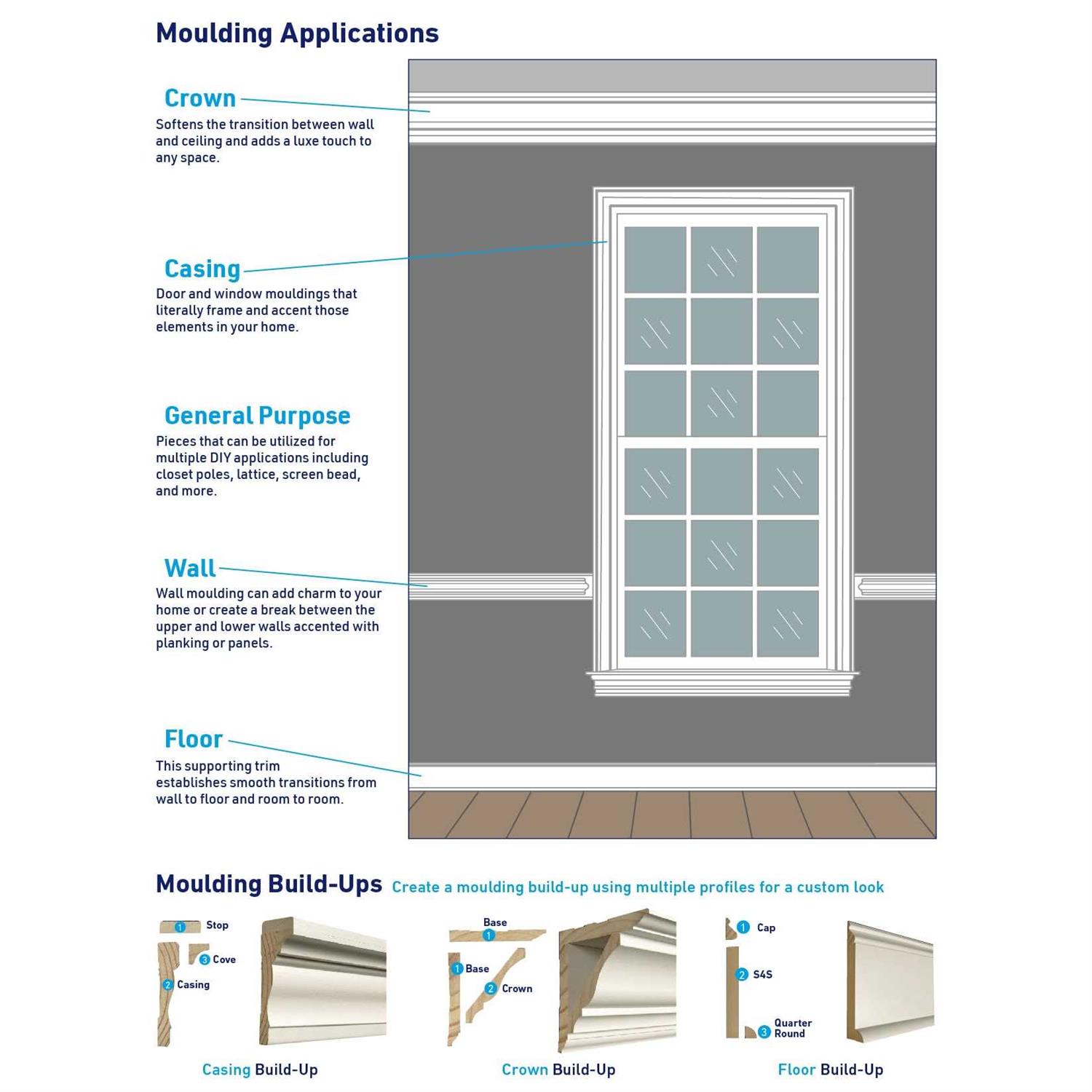 Made from 100% PVC. Rot free and resistant to moisture and insect damage. White PVC moulding is ready to be installed, no finish needed. Can be painted with quality acrylic-latex paint. Use clear PVC cement to join miter joints. Cuts and installs using standard woodworking tools. Will not split or crack. Suitable for exterior and interior applications.