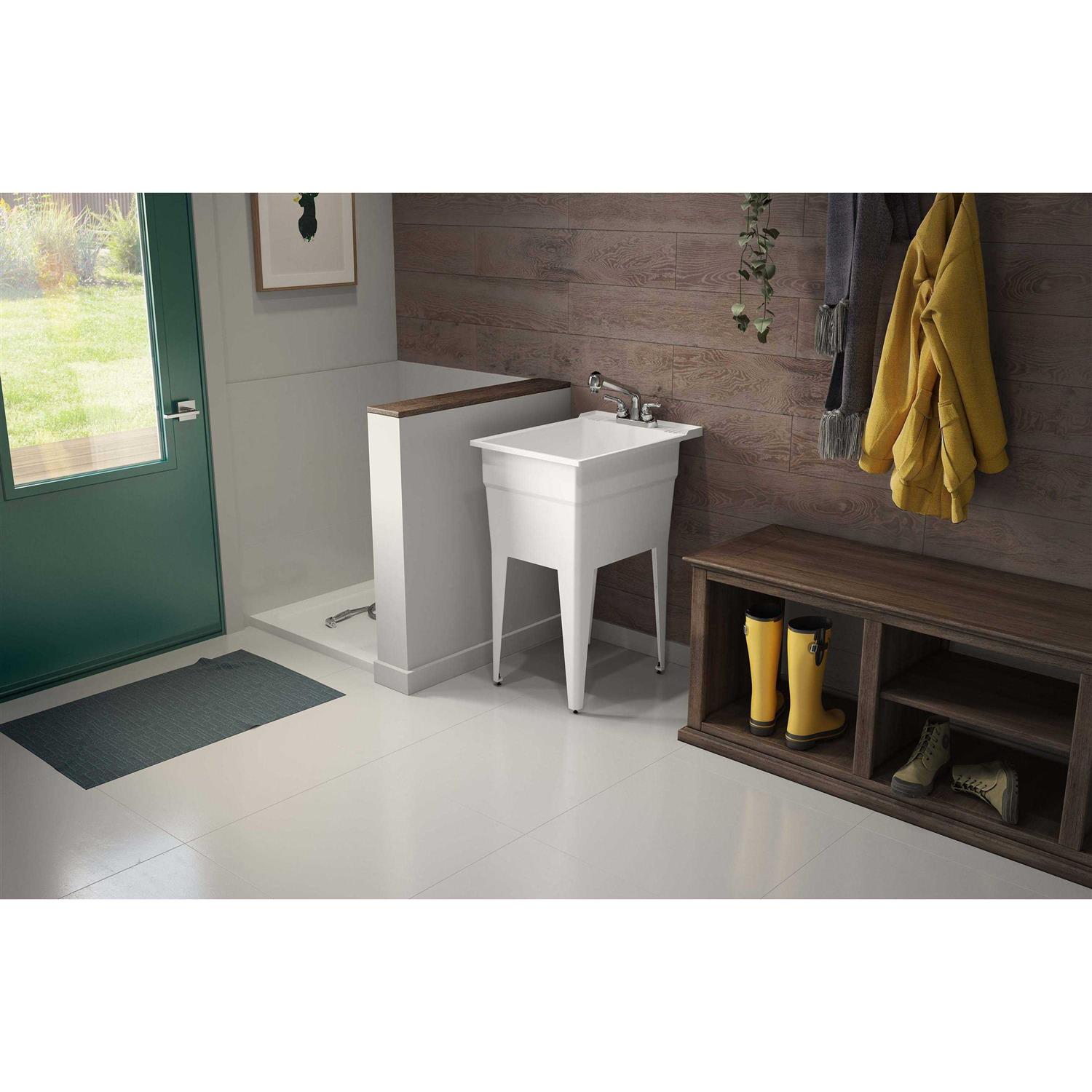 Rugged Tub 18 in. x 24 in. Polypropylene White Laundry Sink with 2 Hdl Non Metallic Pullout Faucet and Installation Kit N52WK1