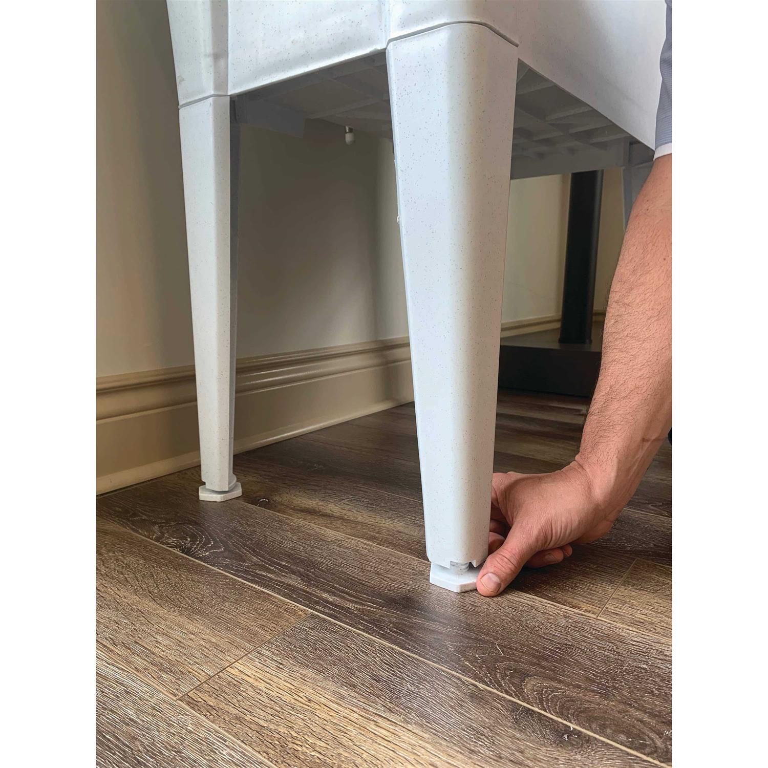 - Rust-proof polypropylene leg with easy to adjust levelers (no tools required).
