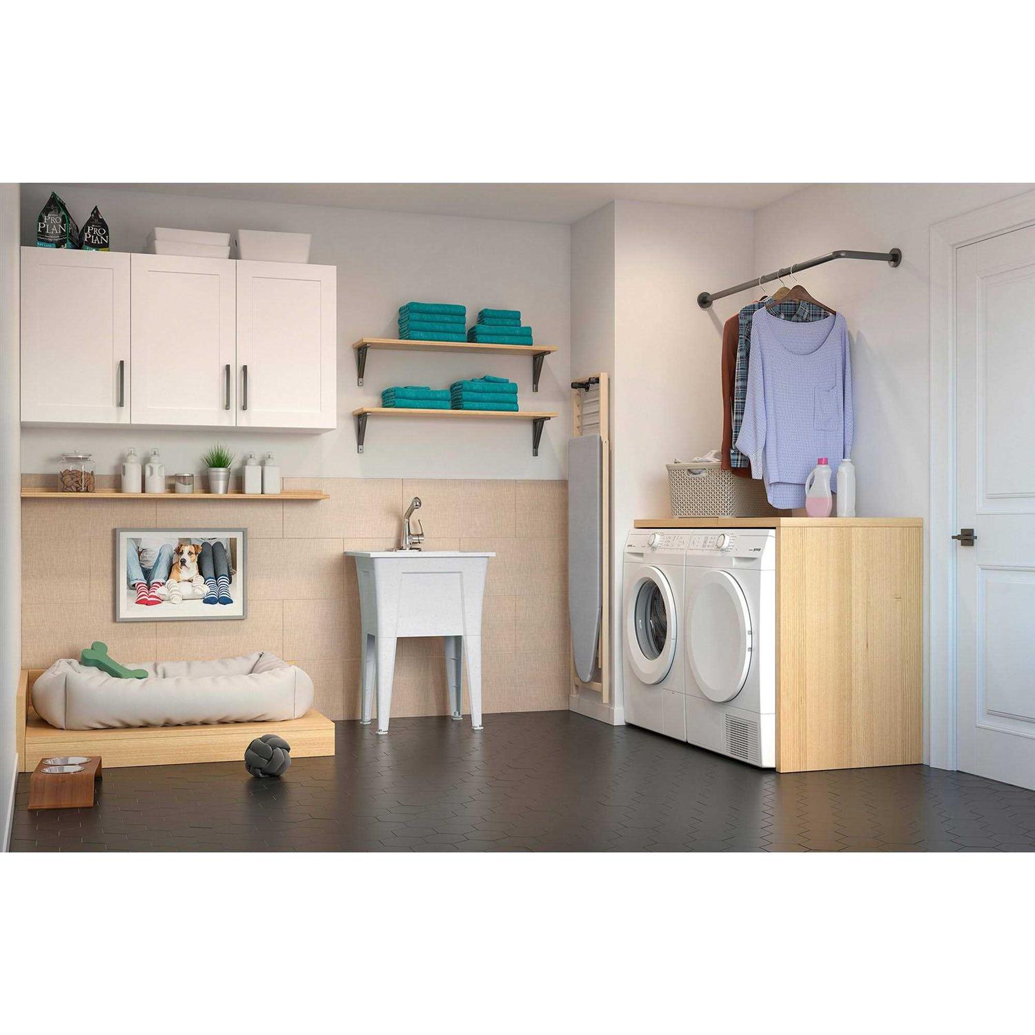 Rugged Tub 24 in. x 22 in. Polypropylene Granite Laundry Sink with 2 Hdl Non Metallic Pullout Faucet and Installation Kit, White with Grey Specs