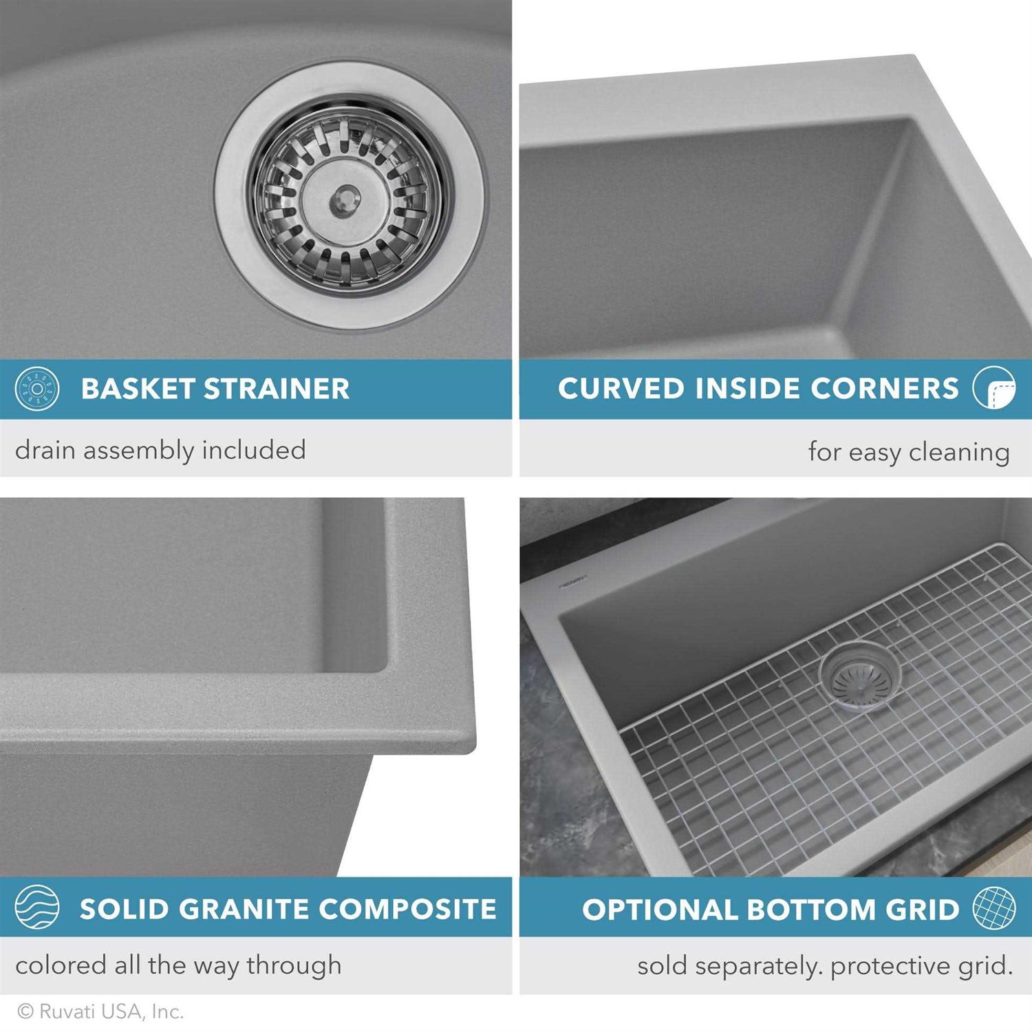 Ruvati 30 x 18 inch Granite Composite Undermount Single Bowl Kitchen Sink RVG2030BK