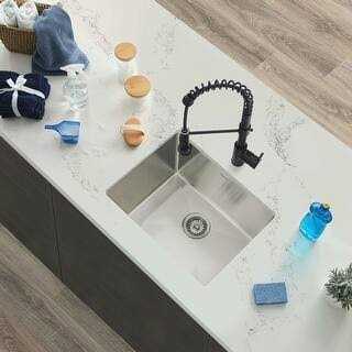 The epiGranite series of kitchen sinks from Ruvati sets a new trend for the home kitchen. The sink is constructed from 80% crushed natural granite, giving the sink extreme durability and the look of real stone. The sink is colored all the way through, for a rich and consistent look that will never discolor. The surface of the sink undergoes a proprietary treatment making it resistant to stains, bacteria and extreme temperatures up to 536 degrees Fahrenheit. The sink comes with a basket strainer drain assembly that traps food waste and is easy to empty into the trash. Ruvati epiGranite sink comes in 8 different color options ranging from warm Caribbean Sand to elegant Black Galaxy. Now you can have a kitchen that truly reflects your style and personality.