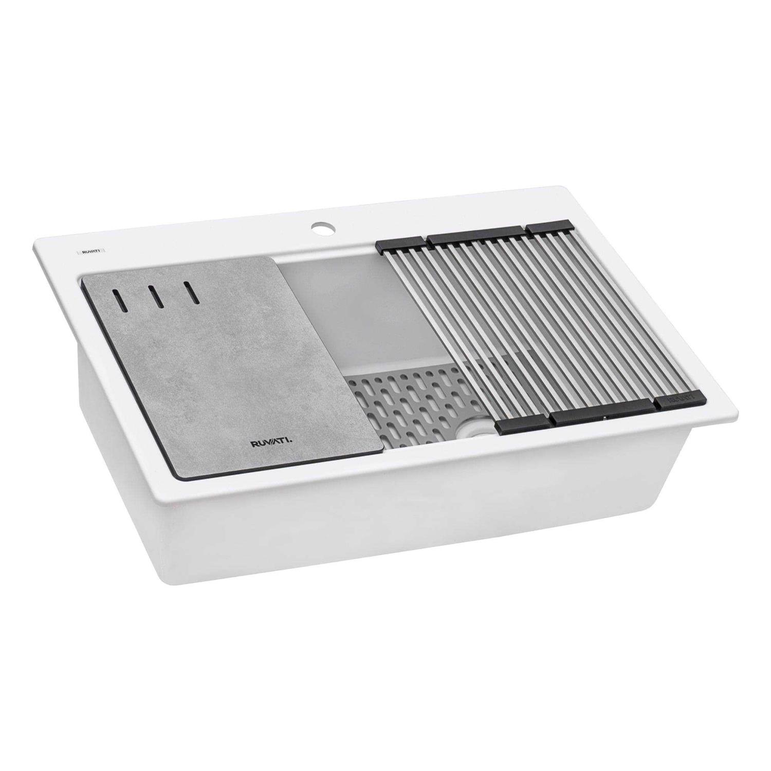 Ruvati 33-inch Granite Composite Workstation Drop-In Topmount Kitchen Sink Matte White – RVG1302WH