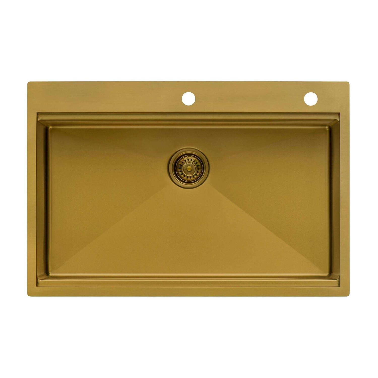 Ruvati 33 inch Polished Brass Matte Gold Workstation Drop-In Topmount Kitchen Sink Single Bowl
