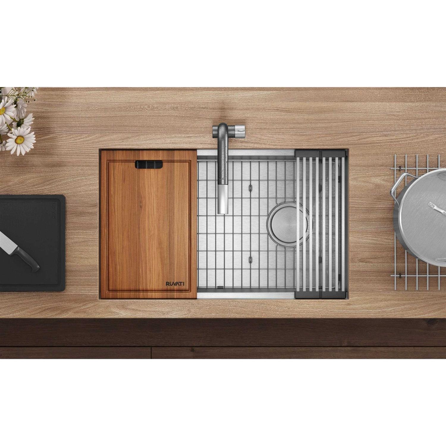Be the first to review “Ruvati 33-inch Workstation Slope Bottom Offset Drain Undermount 16 Gauge Kitchen Sink RVH8591”