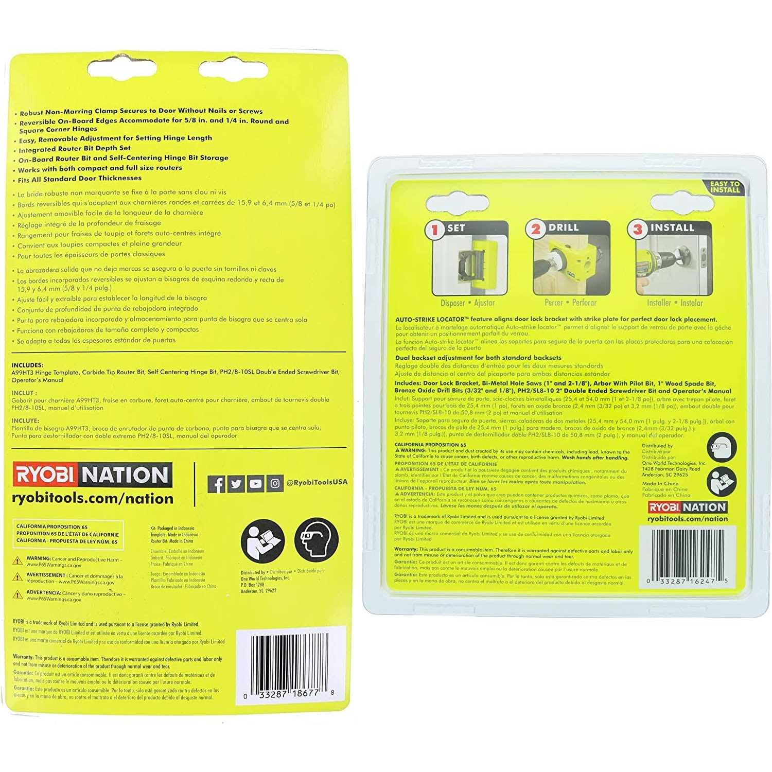 Ryobi A99HT2 Door Hinge Installation Kit/Mortiser Template Bundled with Ryobi A99DLK4 Wood and Metal Door Lock Installation Kit for Installing
