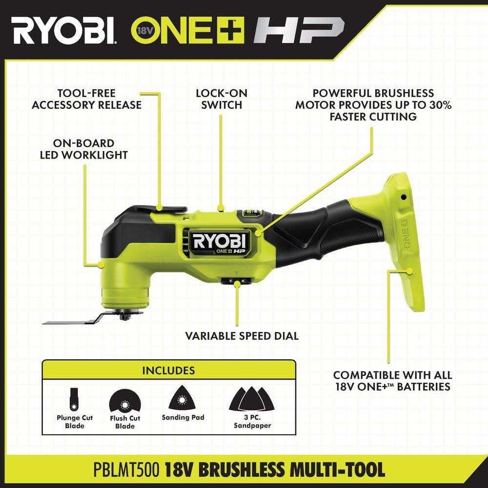 Ryobi PBLMT50B ONE+ HP 18V Brushless Cordless Multi-Tool