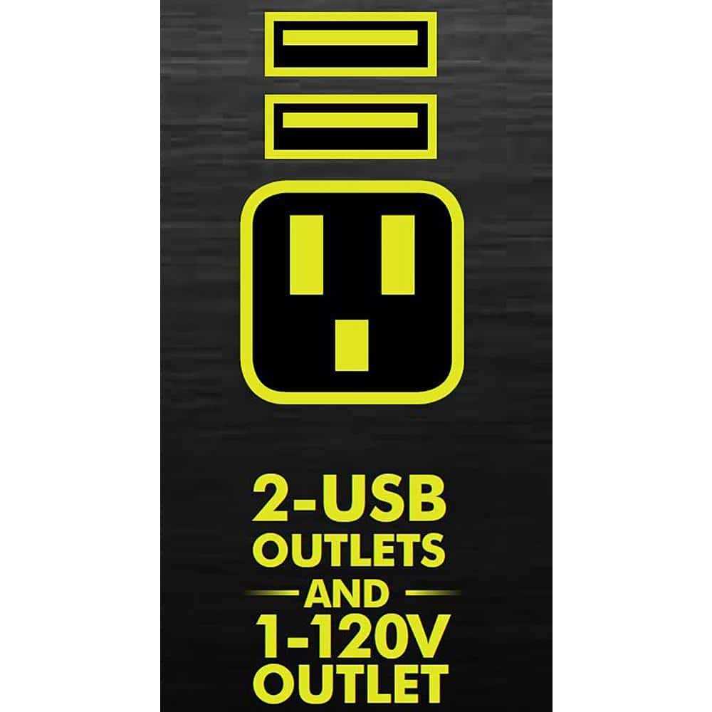 The RYOBI 18V ONE+ Power Source provides convenient, on-the-go power both on and off the jobsite. With a modified sine wave and 150-Watt of continuous output, this inverter is perfect for powering laptops, tablets, cell phones and other small electronics. This compact and lightweight design is compatible with all of your existing RYOBI One+ batteries making endless power even easier. Equipped with 2 USB outlets and one 120-Volt wall outlet for convenient and reliable power.