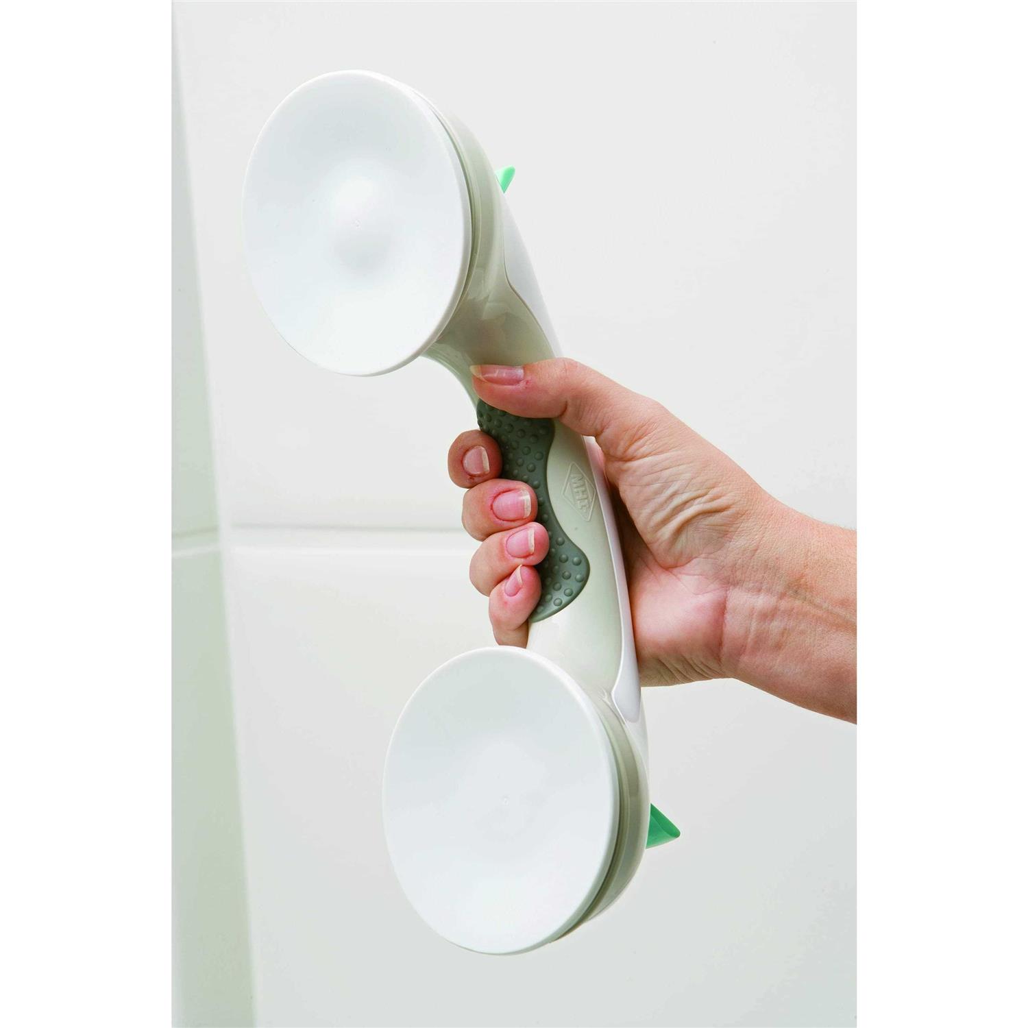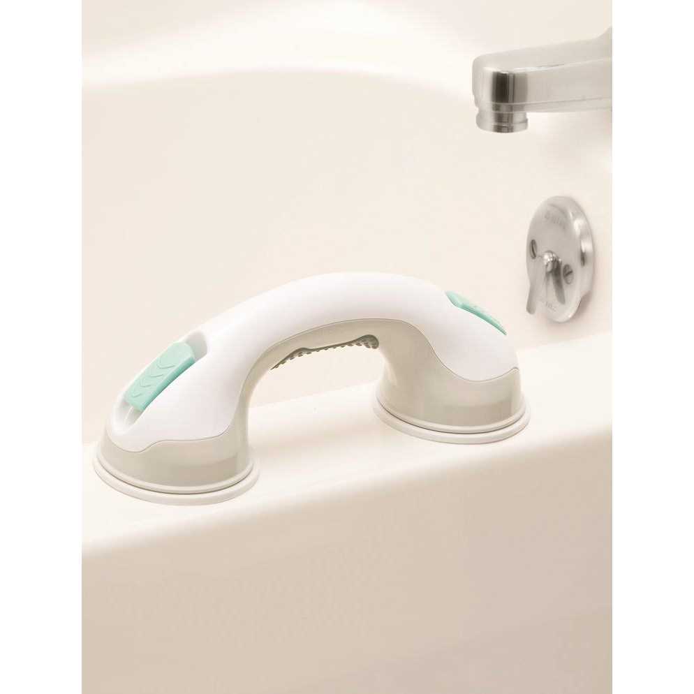 Get a handle on bathroom safety with this wide bathtub and shower handle. The Safe-er-Grip assists your balance while entering or exiting the tub or shower — full body weight is not to be applied to product. (If device is required to bear full body weight, or is used for leverage, it is recommended that a traditional permanently mounted grab bar be installed.) This easy to install grip gives both parent and child steady confidence in and around the tub.