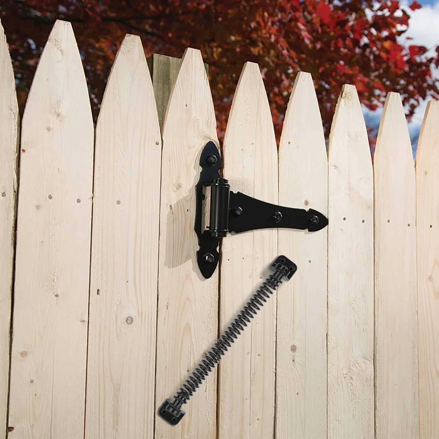 【Premium Material】 Self closing gate spring made of sturdy steel with black powder coated anti-corrosion, anti-rust, not easy to fracture, durable for long-term outdoor use. Now solve the problem of easy fracture of the welded connection. 【Adjustable Spring Tension】The gate spring can adjust the spring tension by using the lock pin and regulator tool(included) to control the closing speed. Self-closing door spring is designed for closing gates or doors automatically to provide convenience and security. 【Easy to Install】The door spring hardware kit includes mounting instructions and fasteners to help you install easily. Just fix one side of the spring on the post, and another side on the gate or door. NOTICE: Be careful not too tighten the screws if you are installing a vinyl fence. 【Wide Application】 Adjustable fence gate spring hardware is suitable for outdoor vinyl door, agricultural fences, garden fences, shed, lawns, shacks, orchards, terraces, pools, square wood post and various wooden door. Whenever it provides convenience and a sense of security for you, and helps you close the door automatically. 【Package Included】 The length of the self closing gate spring is 11-1/2″”. Including all fasteners and instructions, 1x 11-1/2″” heavy duty spring door closer, 1x locating pins, 1x adjusting pin, 4x 1″” screws, designed for both left and right side swing door, suitable for heavy and light operations. Package Included /b br 1x 11-1/2″” Self Closing Gate Spring br 1x 7/8″” Locking Rivet br 1x 3-1/4″” Tension Bar br 1x Installation Instruction br 4x 1″” Mounting Screws br br Produce hardware for Home improvement.”