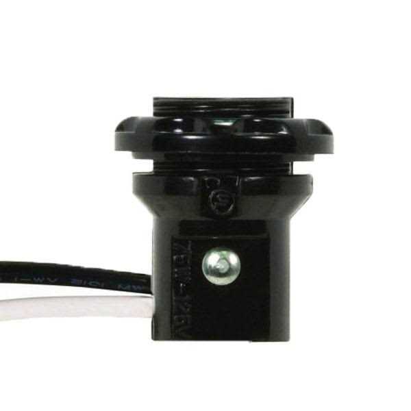 This Satco 90-1556 phenolic candelabra socket is a great replacement for any candelabra socket. It includes a 1.25 inch shoulder and ring to simplify mounting for commercial or residential installation and 8-inch black and white leads. The socket is rated for a maximum wattage of 75 watts and maximum voltage of 125 volts.