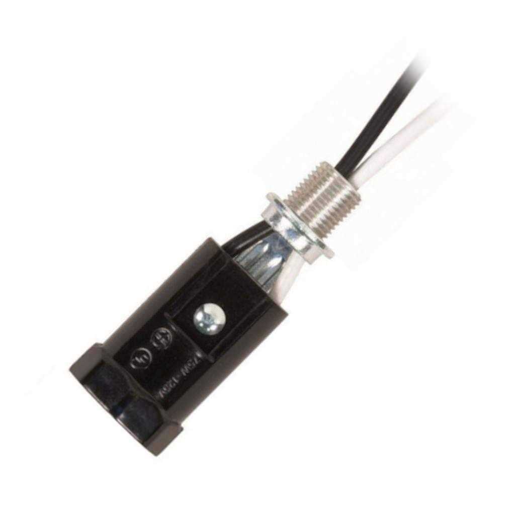 Phenolic Candelabra Sockets with Leads, 12 1/2″ AWM B/W Leads, 2″ Overall Height, 1/8 IP nippl., Single Leg, 75W 125V, 1 11/16″ Smooth