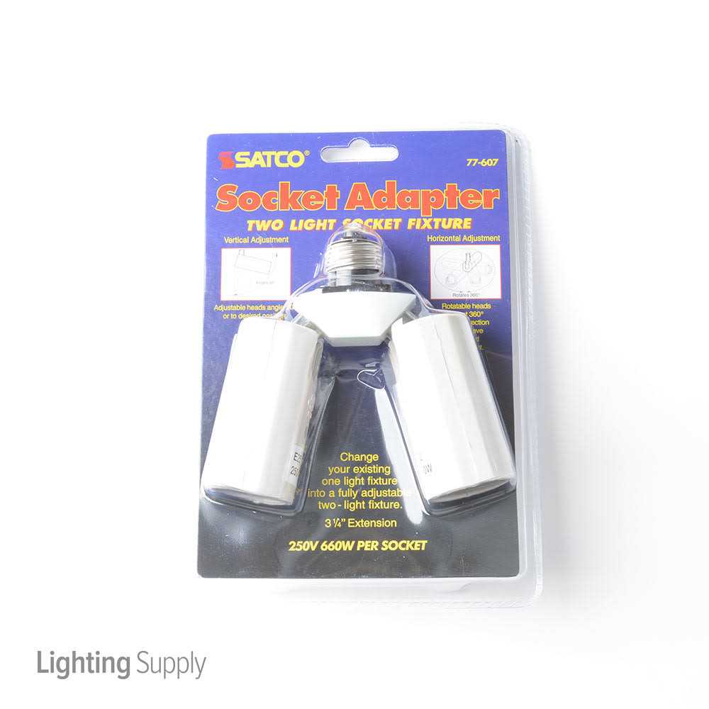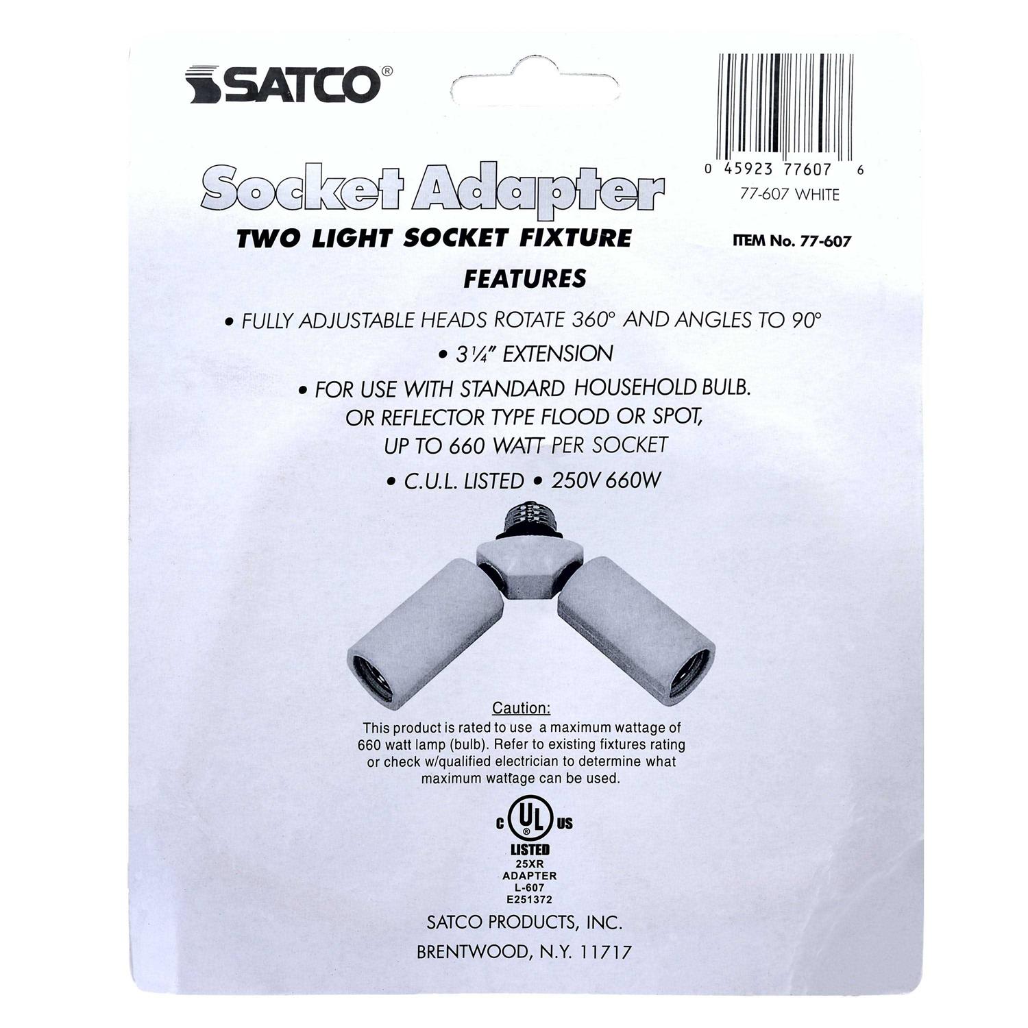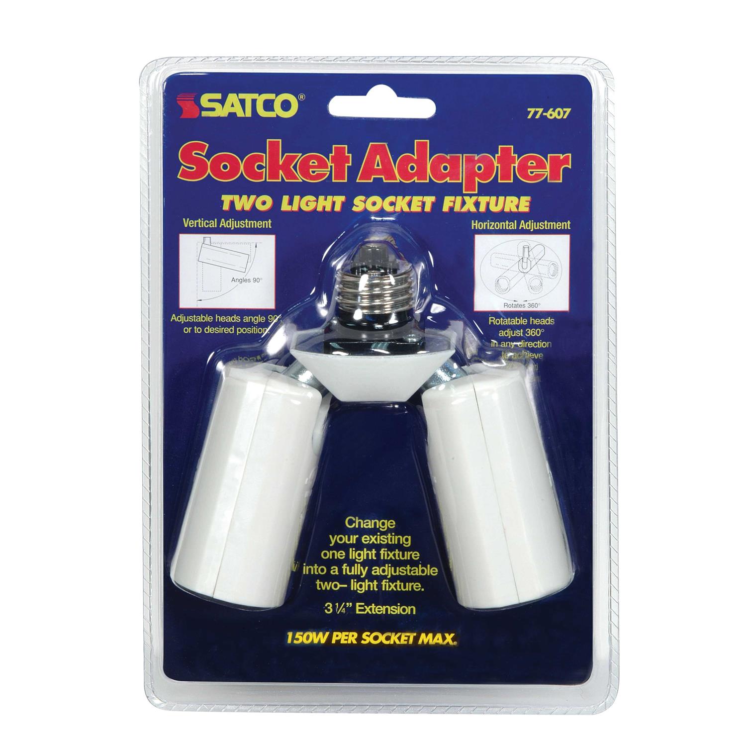 SATCO light is a premier supplier of a range of lighting products. Illuminate our home with this Twin Light Socket Adapter designed to fit medium base incandescent bulbs. It is fully adjustable, and the head rotates 360 degrees and angles to 90 degrees. This plastic light bulb socket with a maximum of 150 watts allows you to turn any socket into an adjustable light fixture. It is perfect for commercial and residential applications.