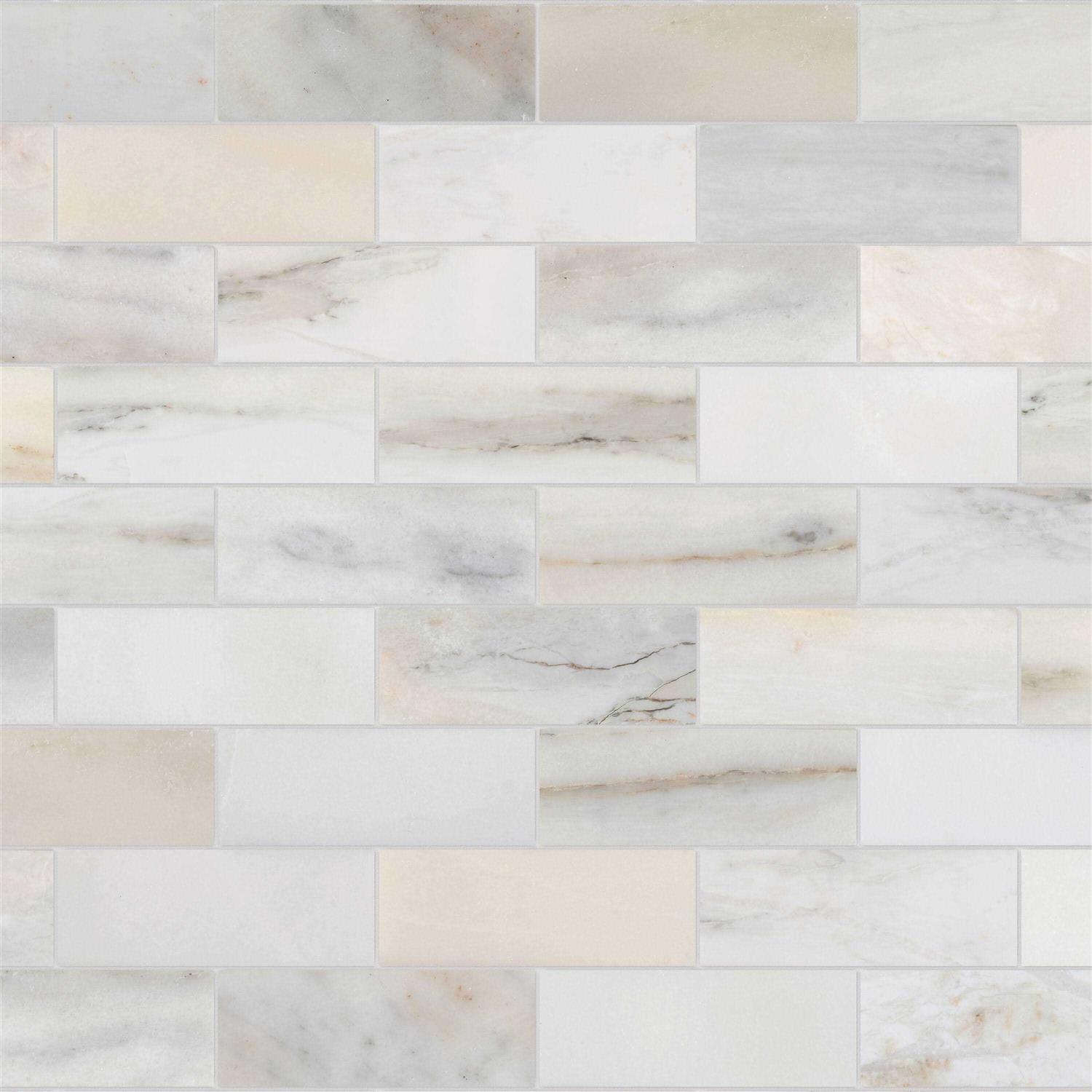 The smooth polish gives this marble mosaic wall tile a luminous shine. This natural stone product contains a variation in color, texture, shading and veining. The brick pattern in this natural stone tile has a rectified edge treatment, perfect for thinner grout lines and a seamless look. PEI rating of 3 allows for installation in medium to heavy traffic areas. Vitreous natural stone is non water absorbent and can be used in wet areas. This item must be sealed prior to grouting and after grouting, using a premium penetrating sealer.