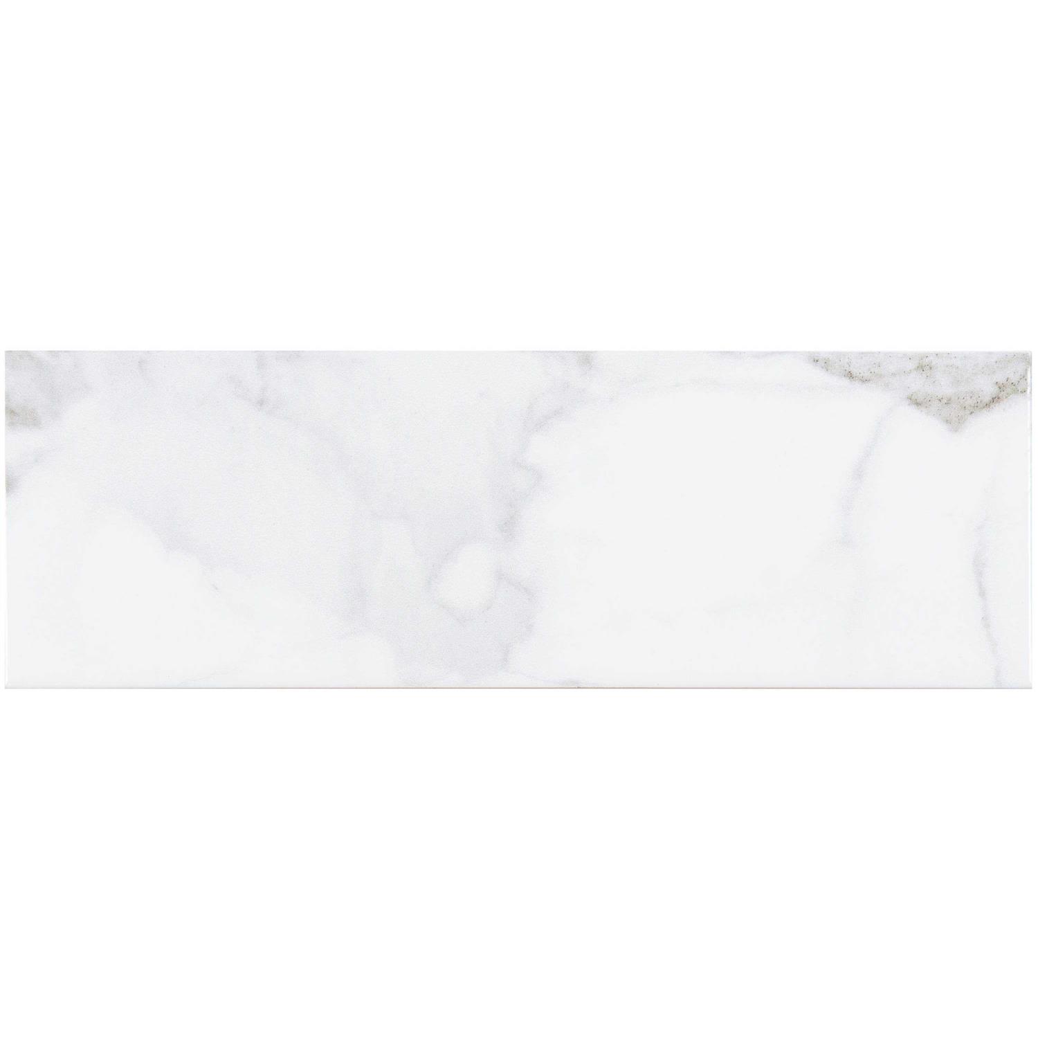 Satori Regent Statuario Glossy 4-in x 12-in Glossy Ceramic Marble Look Wall Tile (0.32-sq. ft/ Piece)