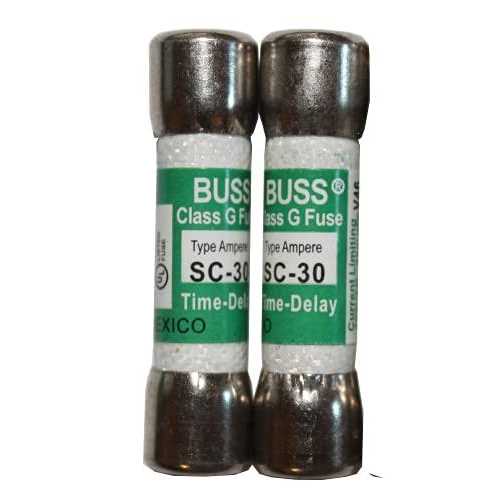Voltage: 480 Vac, 300 Vdc Current: 30 Amps Speed: Time Delay Size: 41mm X 10mm Package includes two fuses Get your equipment up and running quickly with a quality replacement fuse. The SC-30 is commonly found in appliances and lighting or heating equipment. The fuse is a time delay class G fuse with the following ratings: 480 Vac, 300 Vdc, 30 Amps, approximate size – 41mm X 10mm. The package includes two fuses. This product is assembled in Mexico.